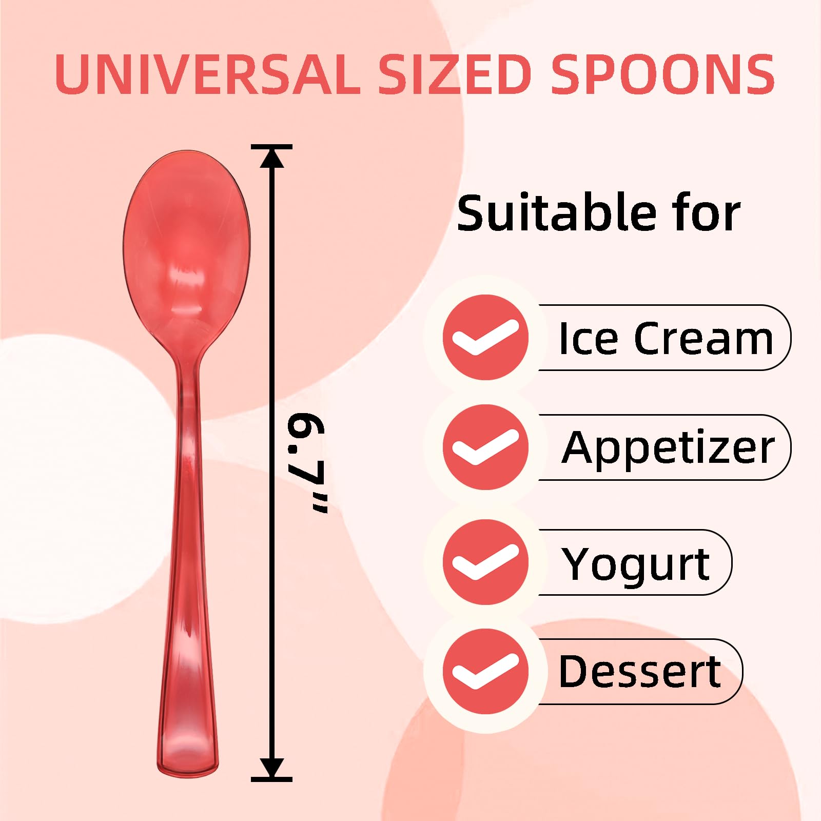【Large Capacity Package】: Each pack contains 50 red plastic spoons, no need to buy frequently, suitable for family storage, restaurant use or large party activities, easily meet the needs of many people. Offering multiple different color options, they are sure to match your decor.