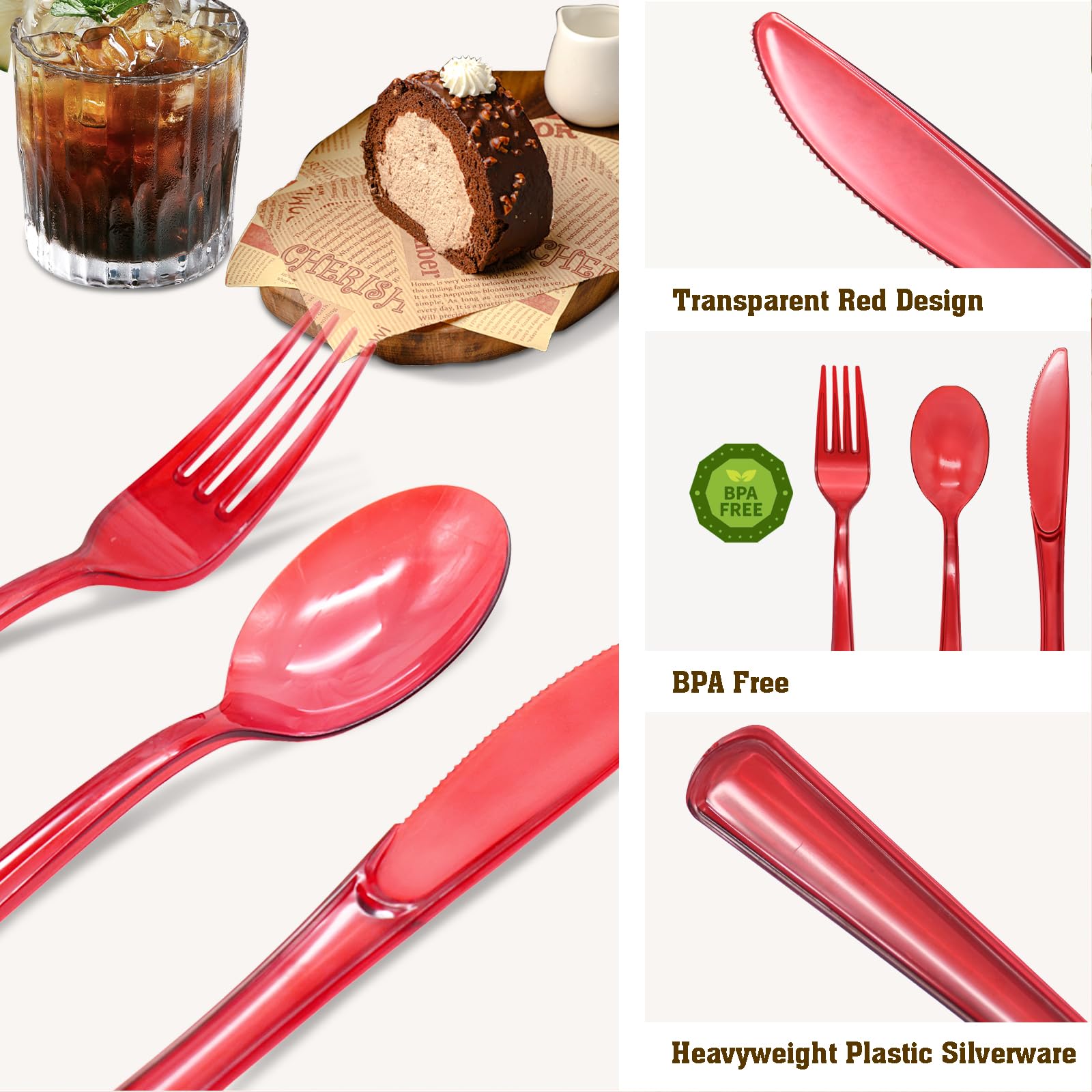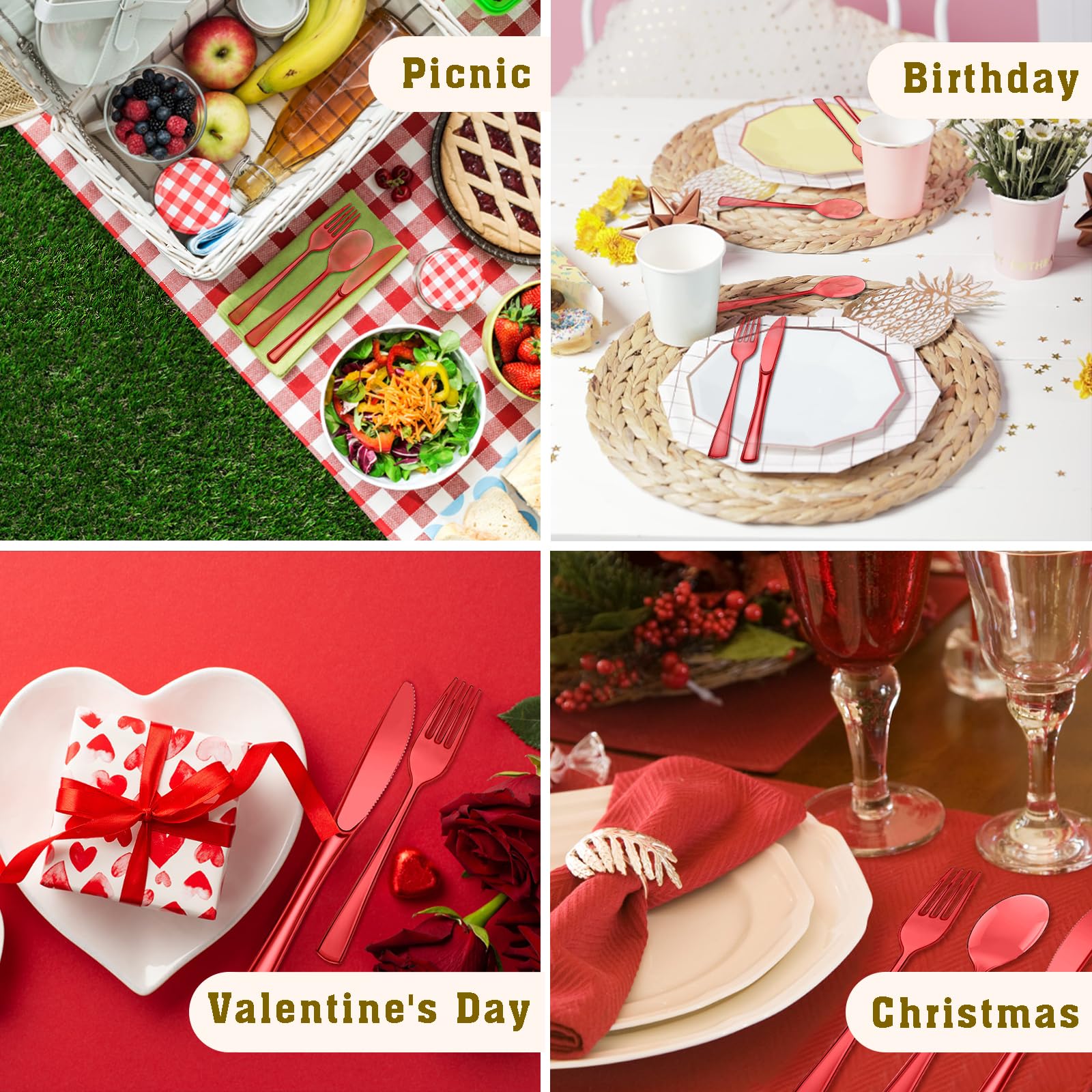 【Suitable For All Occasions】: These red plastic silverware can be widely used in birthday, wedding , Valentine's Day, graduate party, receptions, formal dinners, banquets, picnics and other theme parties, adding bright colors and enhance your table environment.