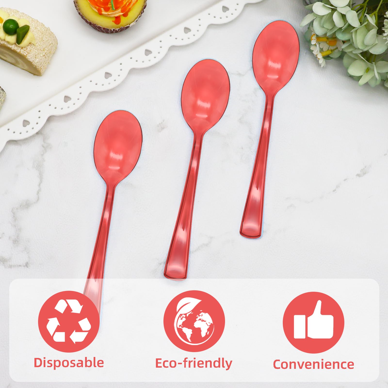 【Convenient】The red plastic spoons are disposable and can easily be thrown away after the party, eliminating the hassle of a long wash and clean-up so you can focus on having a great time with friends and family. Of course, if you want to continue using the clear red plastic spoons, simply wash it in soapy water to restore its lustre and get it ready for your next party.
