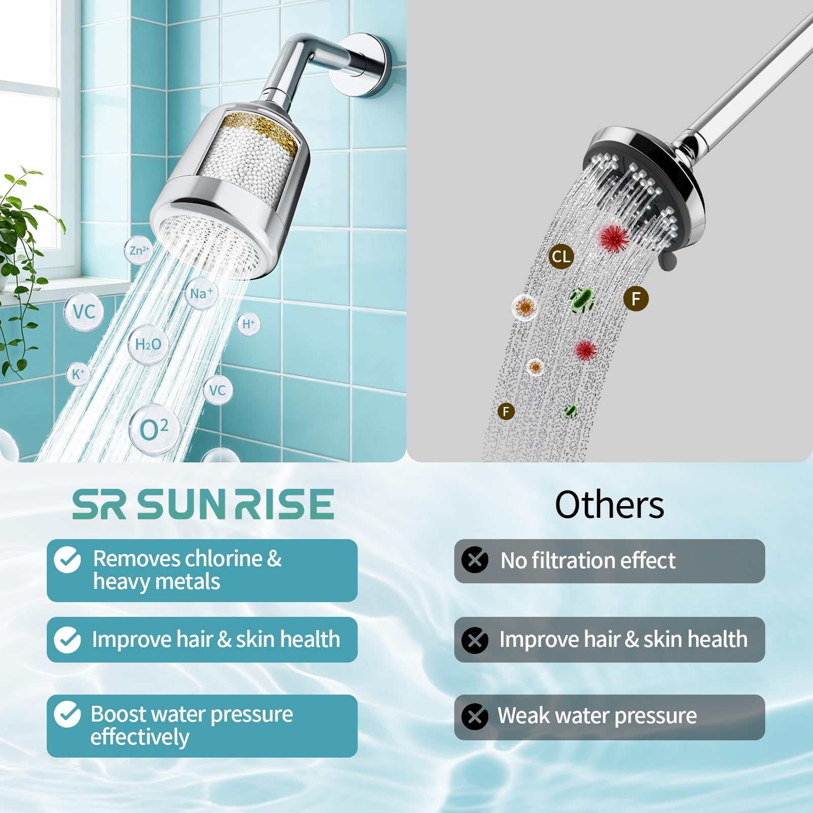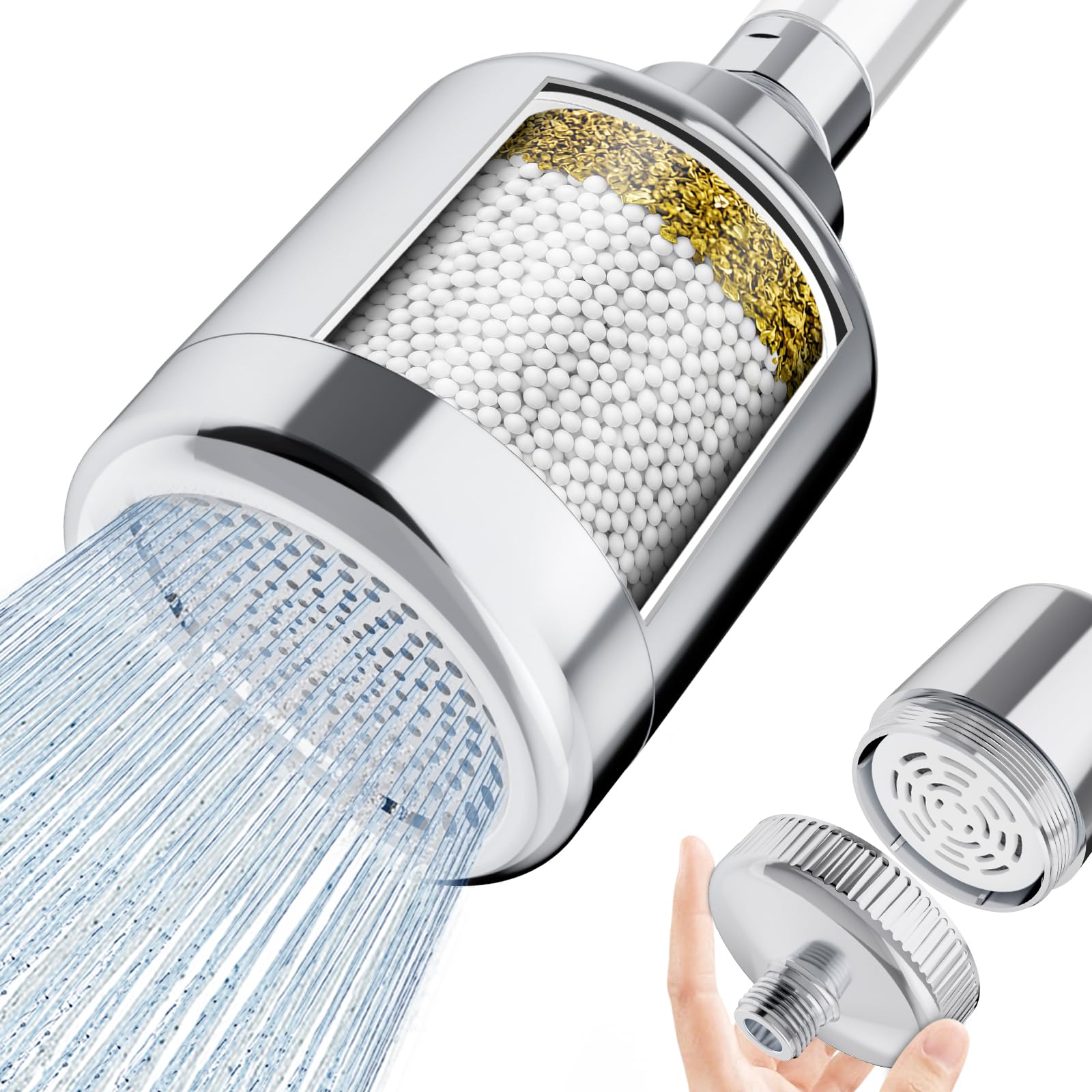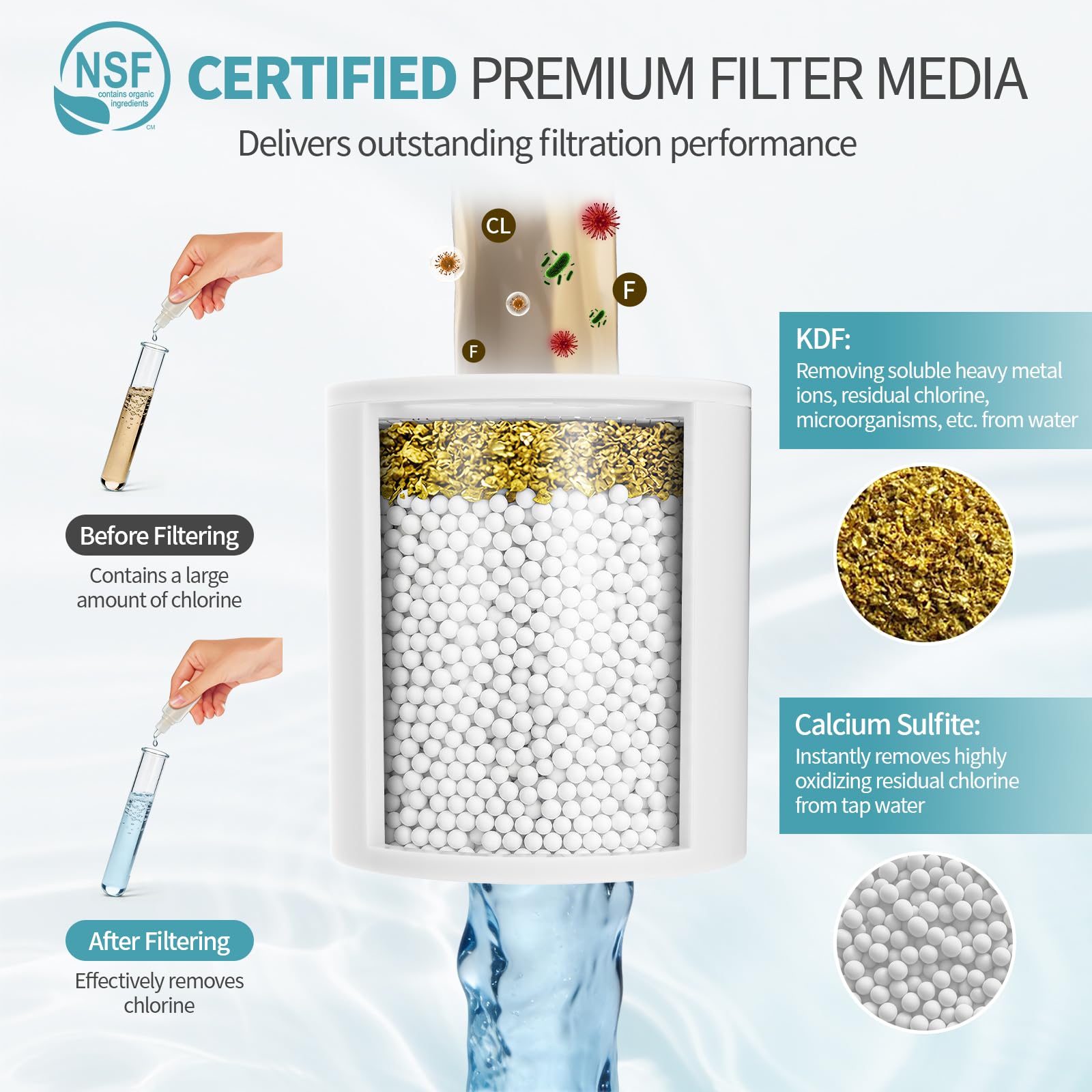 NSF-Certified Protection: Features an NSF-certified core with KDF and calcium sulfite that removes chlorine, impurities, and odors from hard water, safeguarding your skin and hair with every shower.