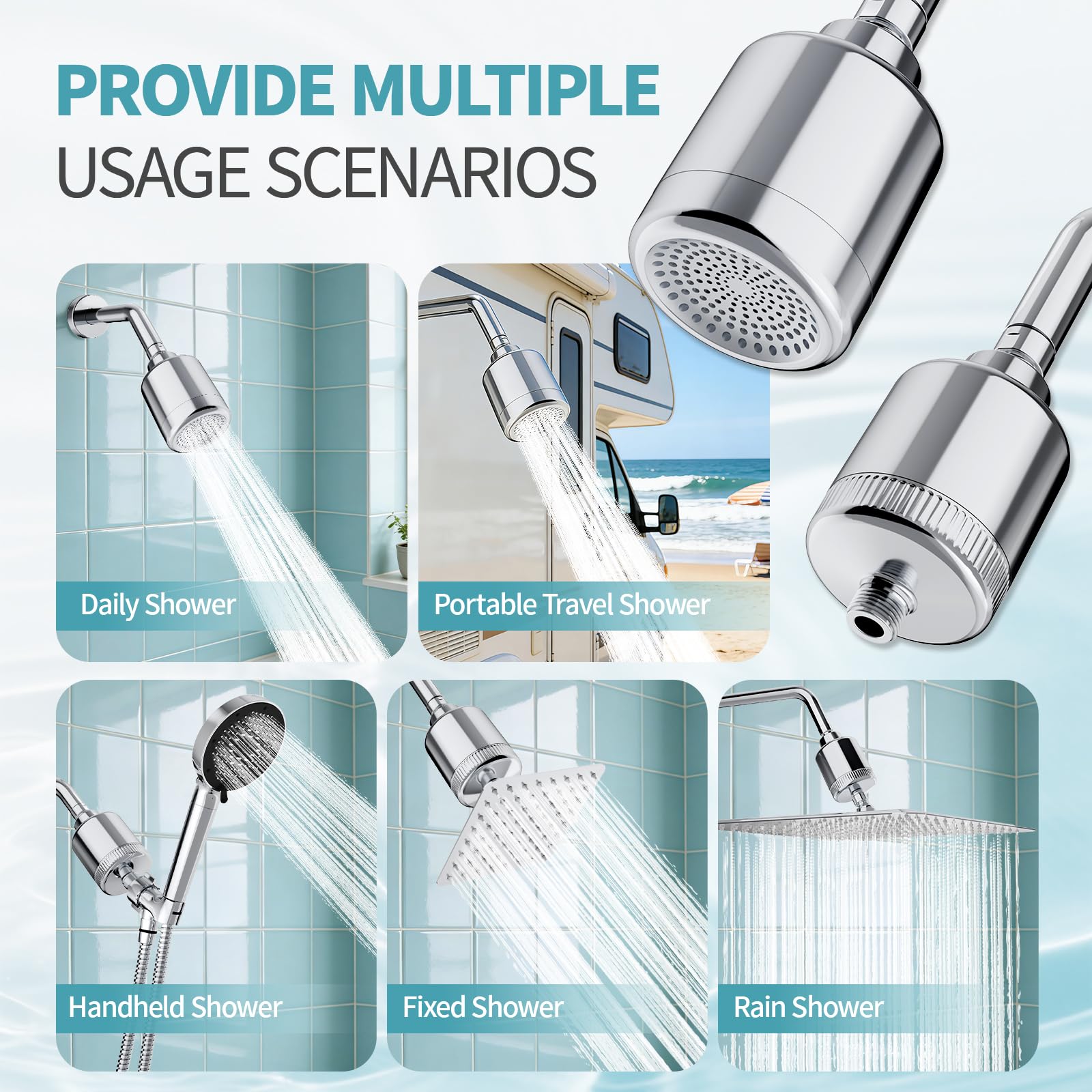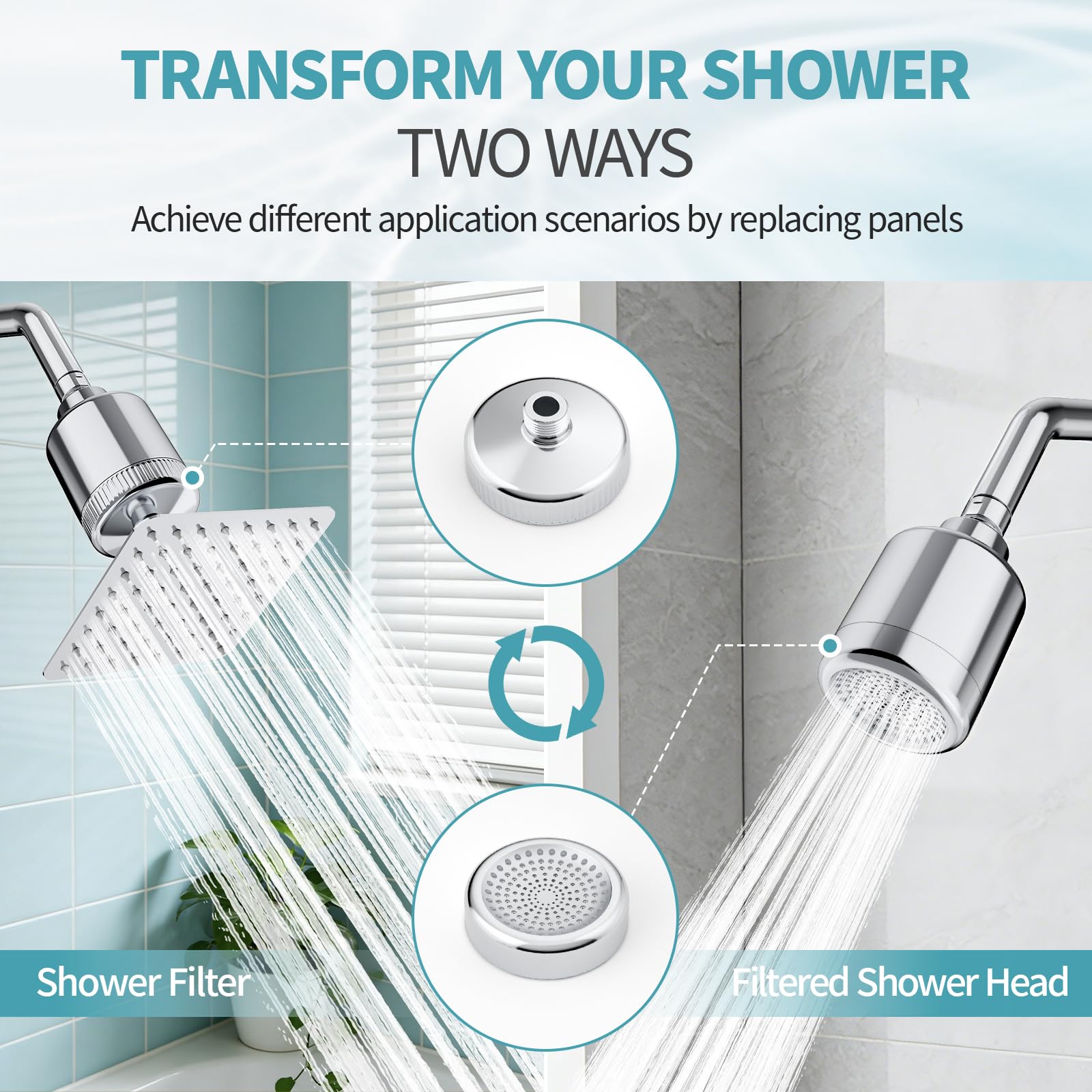Dual Panels for Two Uses: Switch easily between a filtered shower head and a shower filter with two dedicated panels. The 20-stage filter cartridge is designed for quick, tool-free replacement.