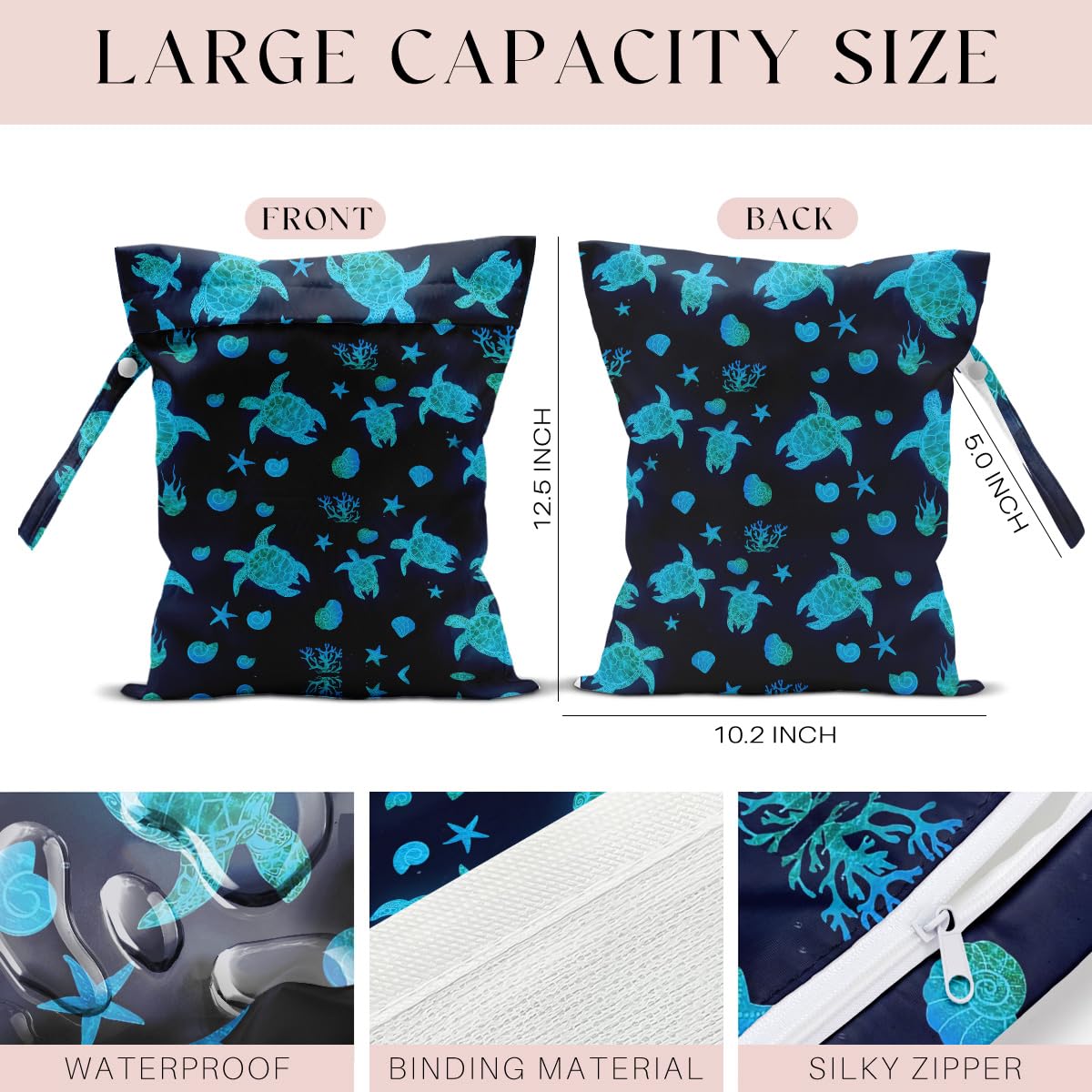 💕 ENOUGH SPACE –You will get 1 wet bag, the size is approx.: 10.2" x 12.6". Comes with a handle so that you can easily pick the bag up or hang it. Each can hold approximately 5 cloth diapers. They are light weight, easy to carry, swimsuit bag, Beach essentials.
