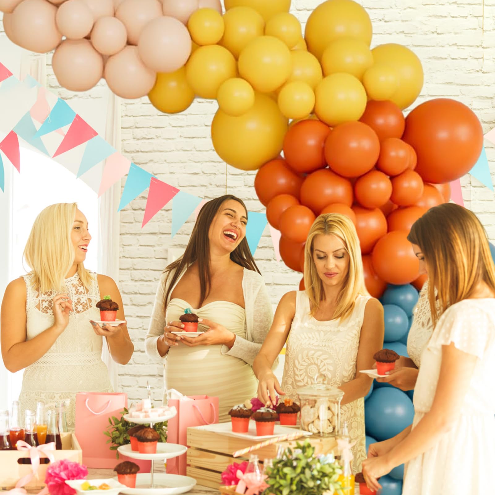 Rustic Colors Balloons:You will receive this 60pcs 12-inch balloons set, which includes 4 rich colors. Retro blue balloons x 15, Burnt orange balloons x 15, mustard yellow balloons x 15, apricot balloons x 15. Accompanying by a 10m ribbon. Retro and fashionable matching will better embellish your baby shower.