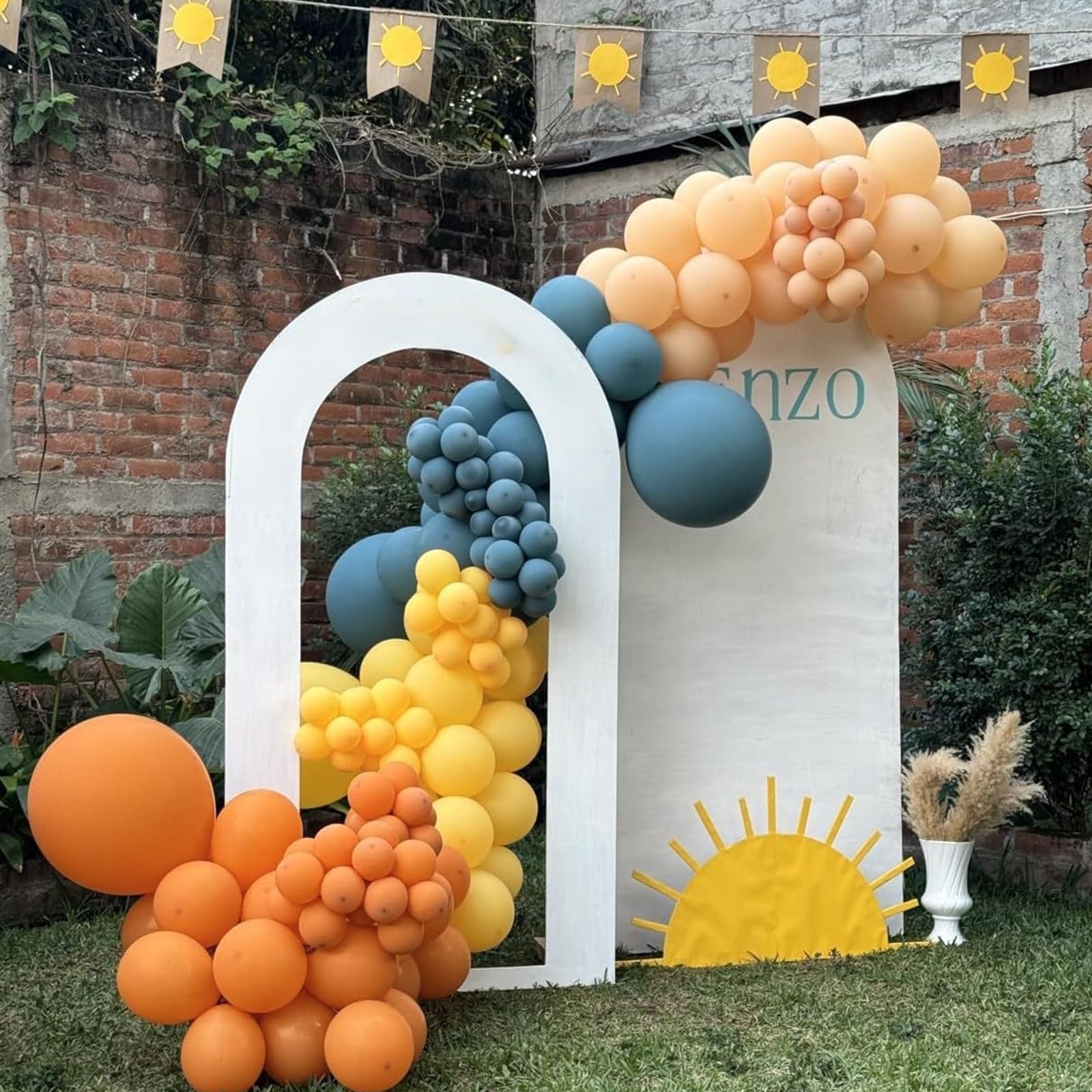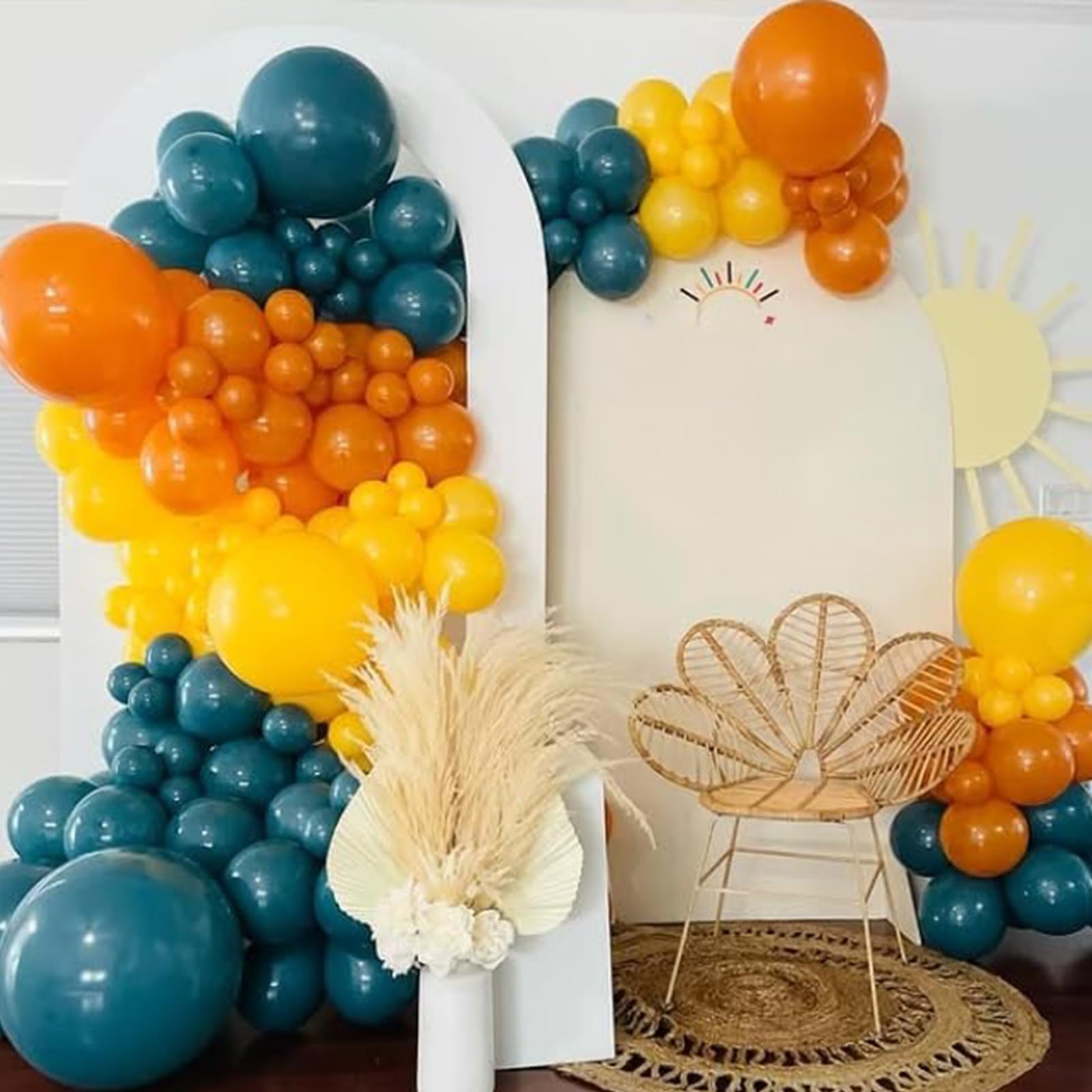 Versatile Applications: These orange blue yellow balloons are suitable for all kinds of parties. Whether it is a here comes the son baby shower, kids birthday party, boho theme party, retro theme party, graduation party or rustic decor and boho fall decor, the retro balloons can always bring you colorful joy, enjoy your exclusive shower party!