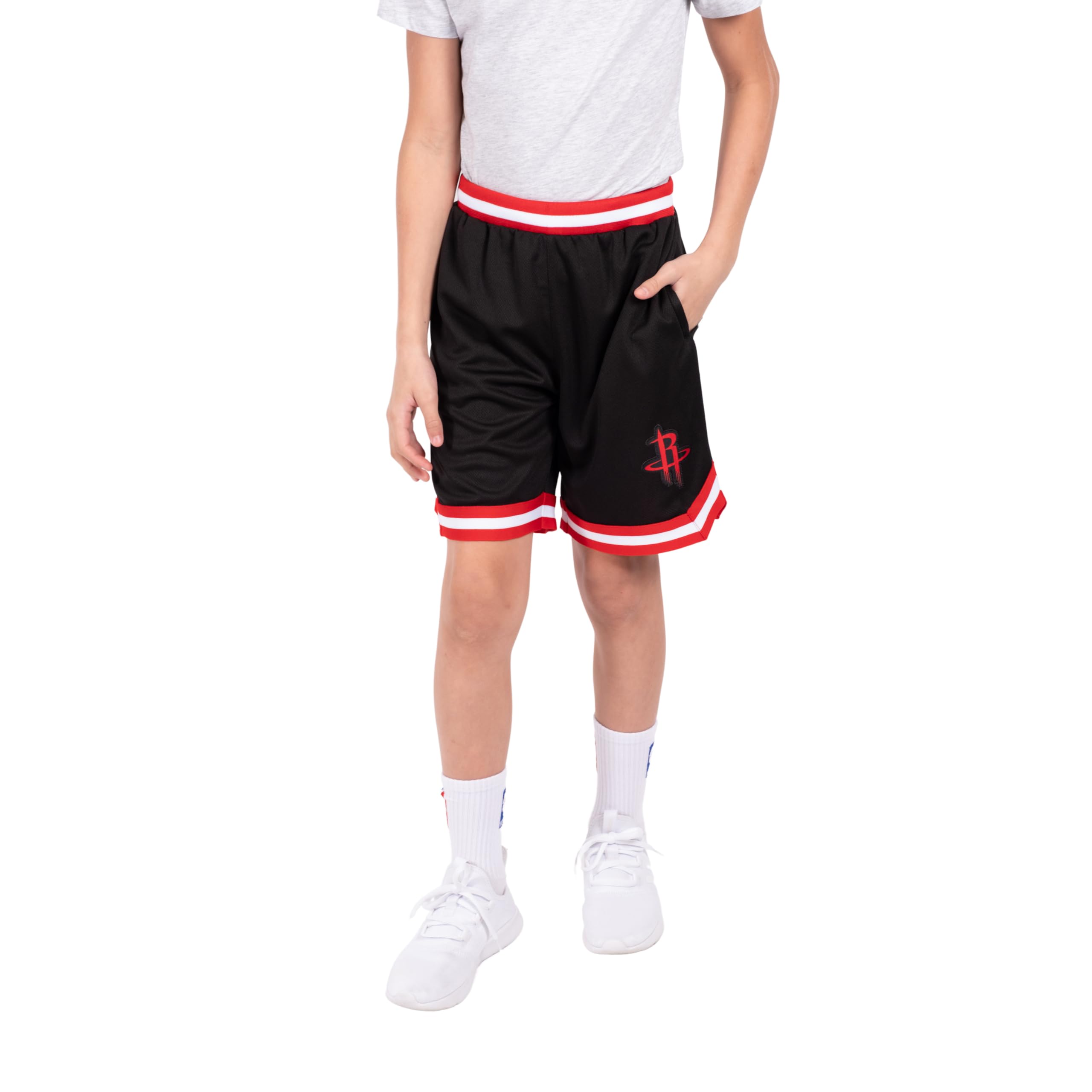 FUNCTIONAL AND STYLISH DESIGN: a black body create bold color contrasts with NBA team logos. Useful additions include two side pockets and a loose fit for unrestricted movement.