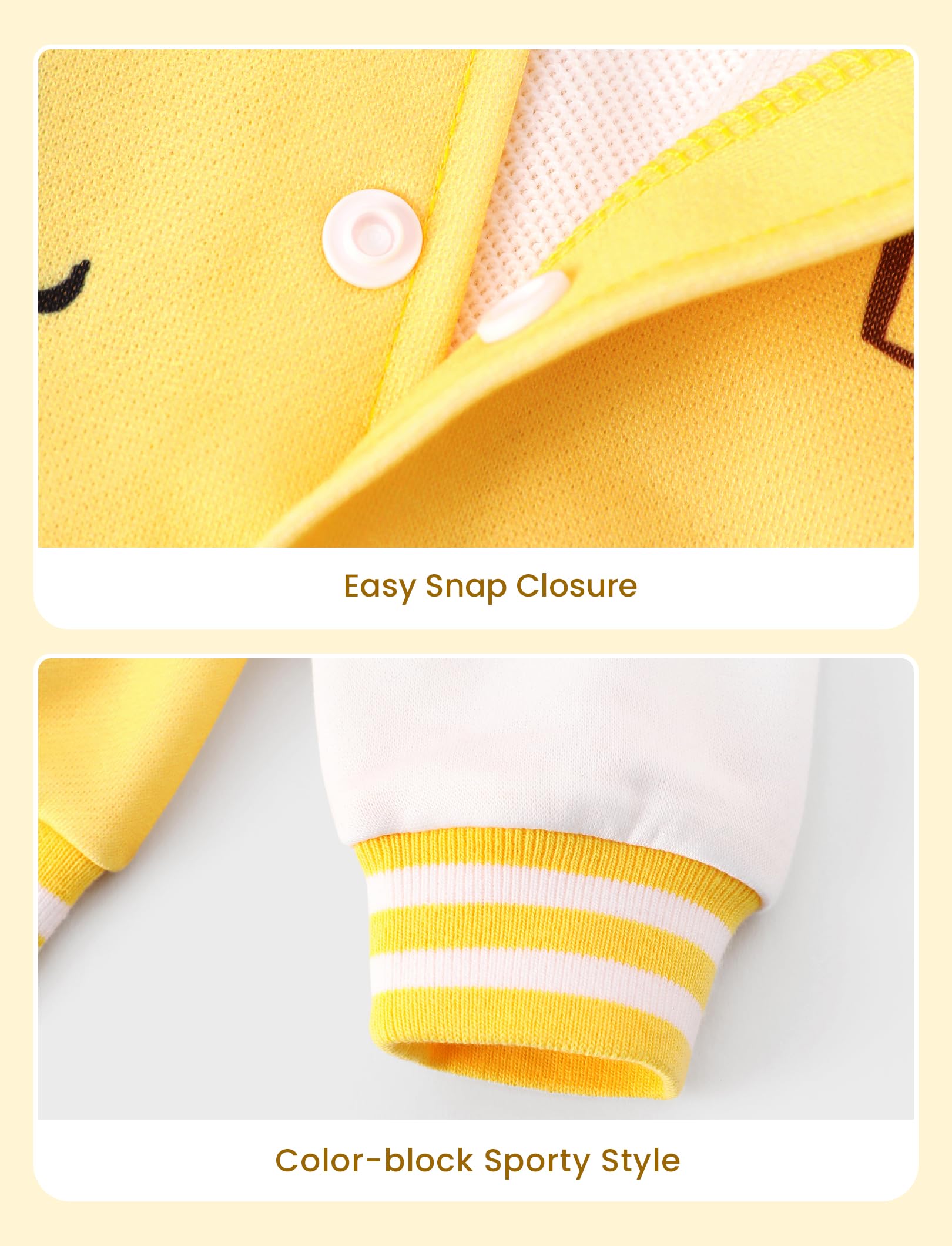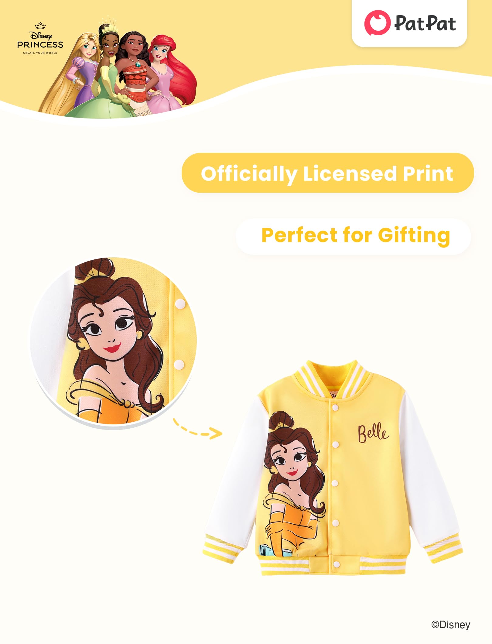 Charming & Elegant Design: Let your little one shine with this Disney Belle varsity jacket! Featuring Belle in her iconic yellow gown, this bright yellow jacket with white sleeves and โBelleโ lettering is stylish and fun. Perfect for kids aged 2-6, itโs ideal for outdoor play, school, or outings, bringing the timeless beauty of Beauty and the Beast to life
