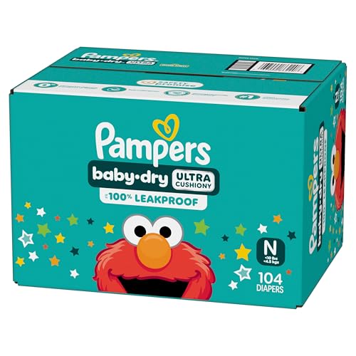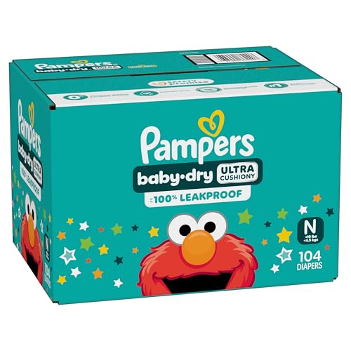 Pampers Diapers - Baby Dry - Size 0, 104 Count, Absorbent Disposable Newborn Diaper
