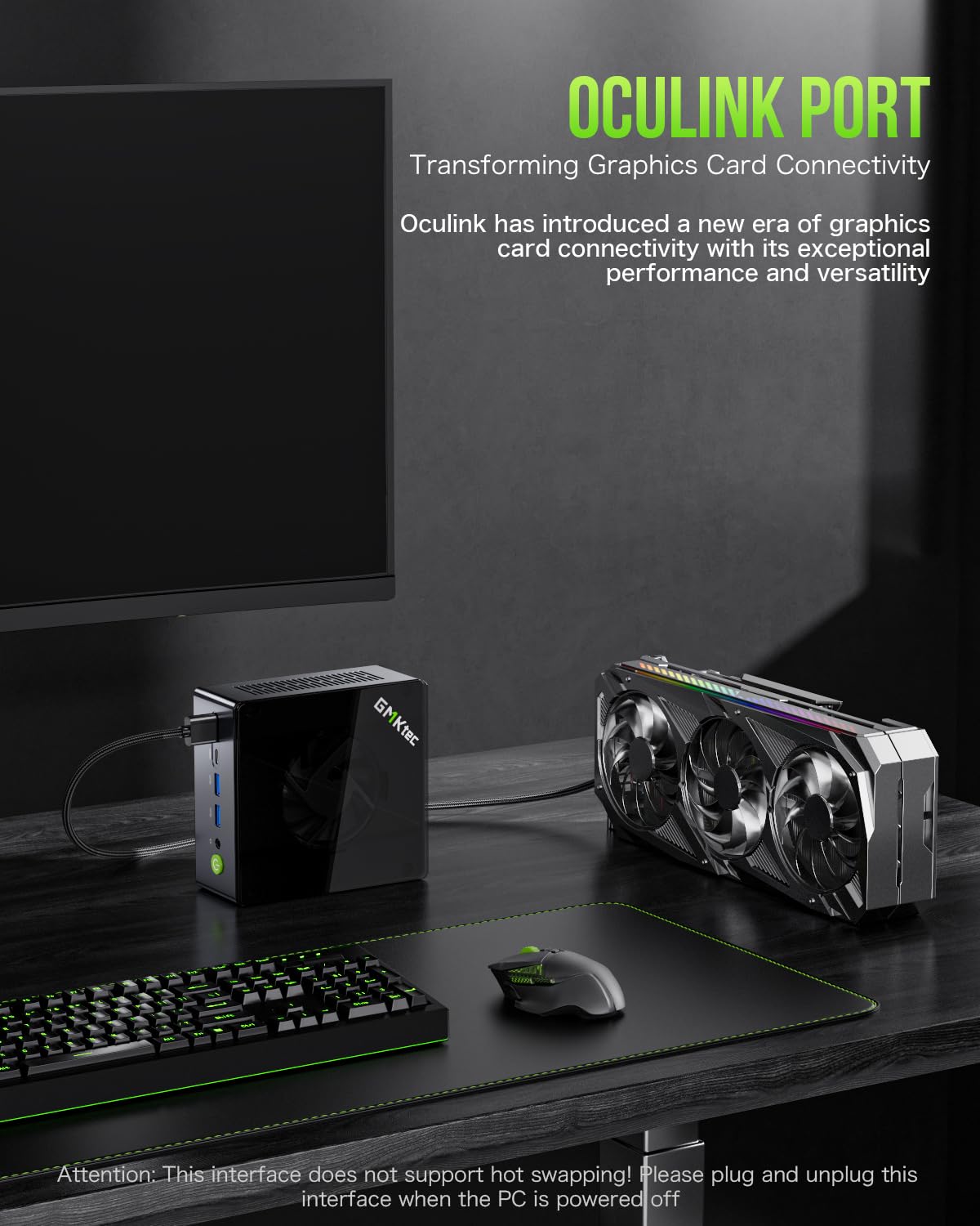 【Oculink Port】 The M7 Oculink port enables higher bandwidth capabilities, better frame rates and lower lag. The standard also operates at PCIe x4 speeds, compared to Thunderbolt's x3. Gamers and content creators can benefit from OCuLink's higher bandwidth, resulting in better performance and lower lag for eGPU setups.
