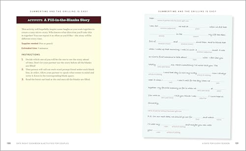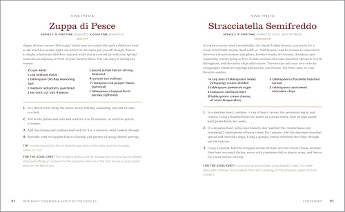 Rev up the romance without making a reservation Couples don't need extravagant experiences to foster a strong relationship―you can connect and have fun right in the comfort of your own home. Date Night Cookbook and Activities for Couples provides uncomplicated recipes designed for two, plus bonding activities that make date nights deliciously fun. What sets this date-night-in cookbook apart from other couples cookbooks: Simple recipes and complete menus―Each date night menu includes a main course, one or two sides, plus a fun extra recipe, like a dessert. You also get tips for what to drink with your menu. Tips for two cooks―Work together in a well-choreographed culinary dance using advice for shopping, prepping your kitchen, and divvying up tasks between chef and sous chef. Games for getting closer―Keep the conversation flowing with activities and questions that come with each menu. You'll discover new things about each other, laugh together, and express your love in creative ways. Focus on each other and "get away from it all" without having to go out using this engaging cookbook for couples.