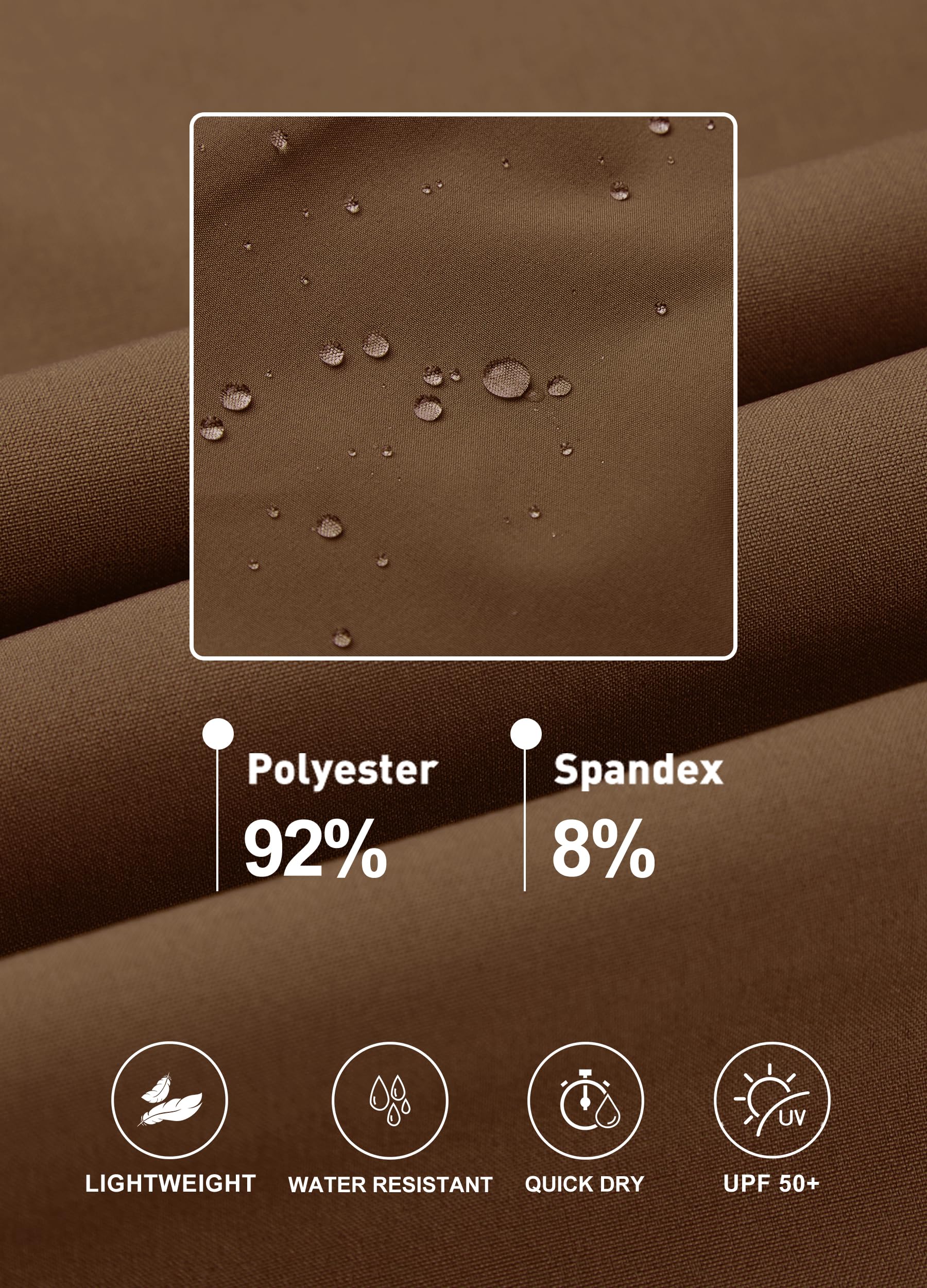 The fabric is super lightweight, quick-drying, breathable, and water-resistant, ensuring all-day comfort and cool during hiking, jogging, or daily activities