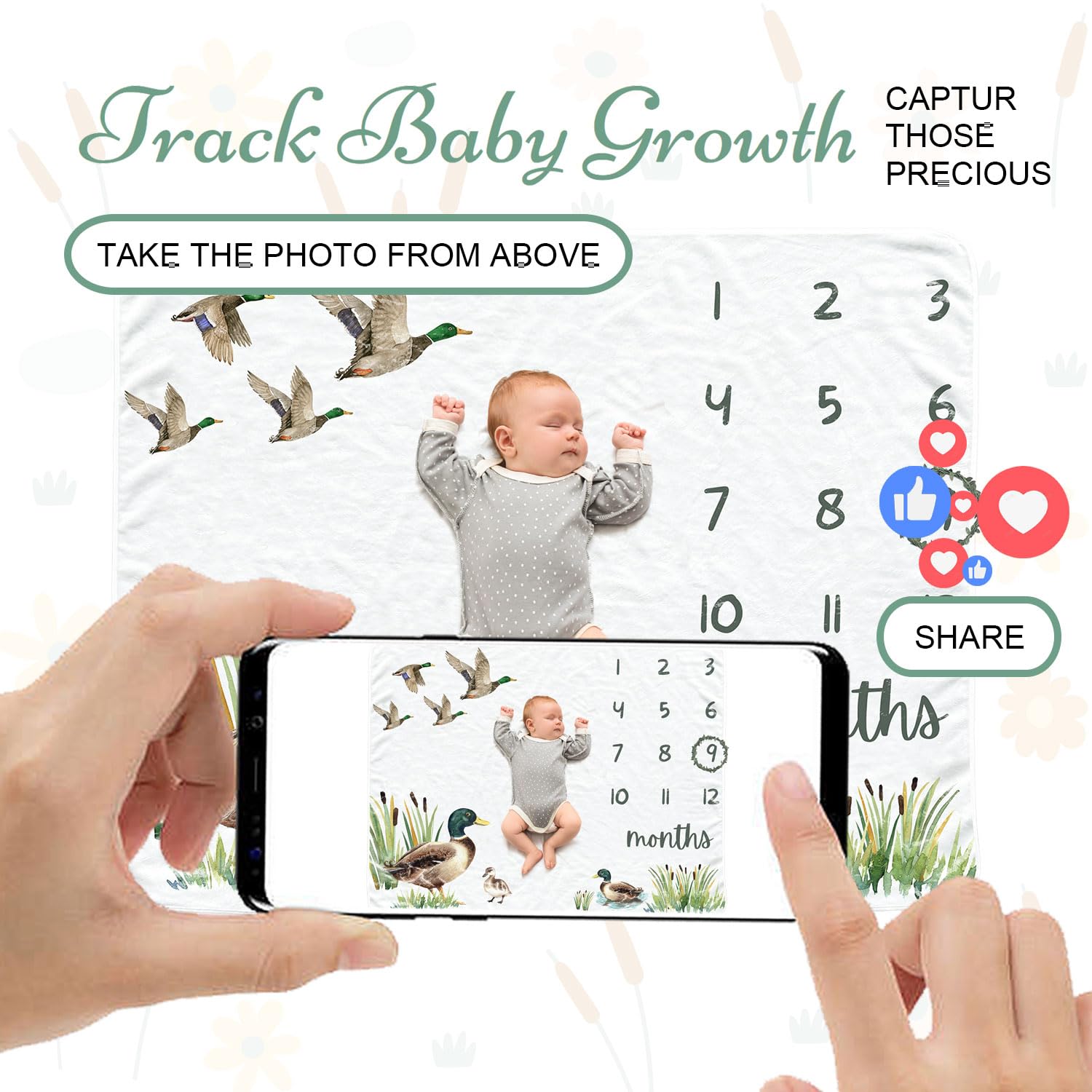 Celebrate Monthly: Embrace each step with our mallard duck baby monthly blanket, designed for capturing and celebrating your little one's growth in a beautiful and memorable way.