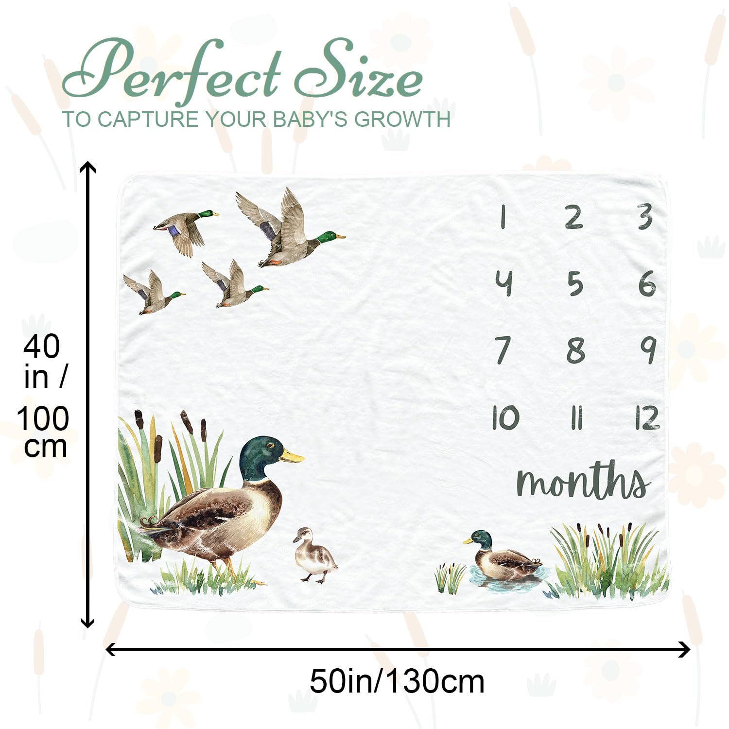 Generous Size for Monthly Memories: Measuring a spacious 40*50 inches, our mallard duck baby monthly blanket provides ample room for both your adorable little one and their monthly.