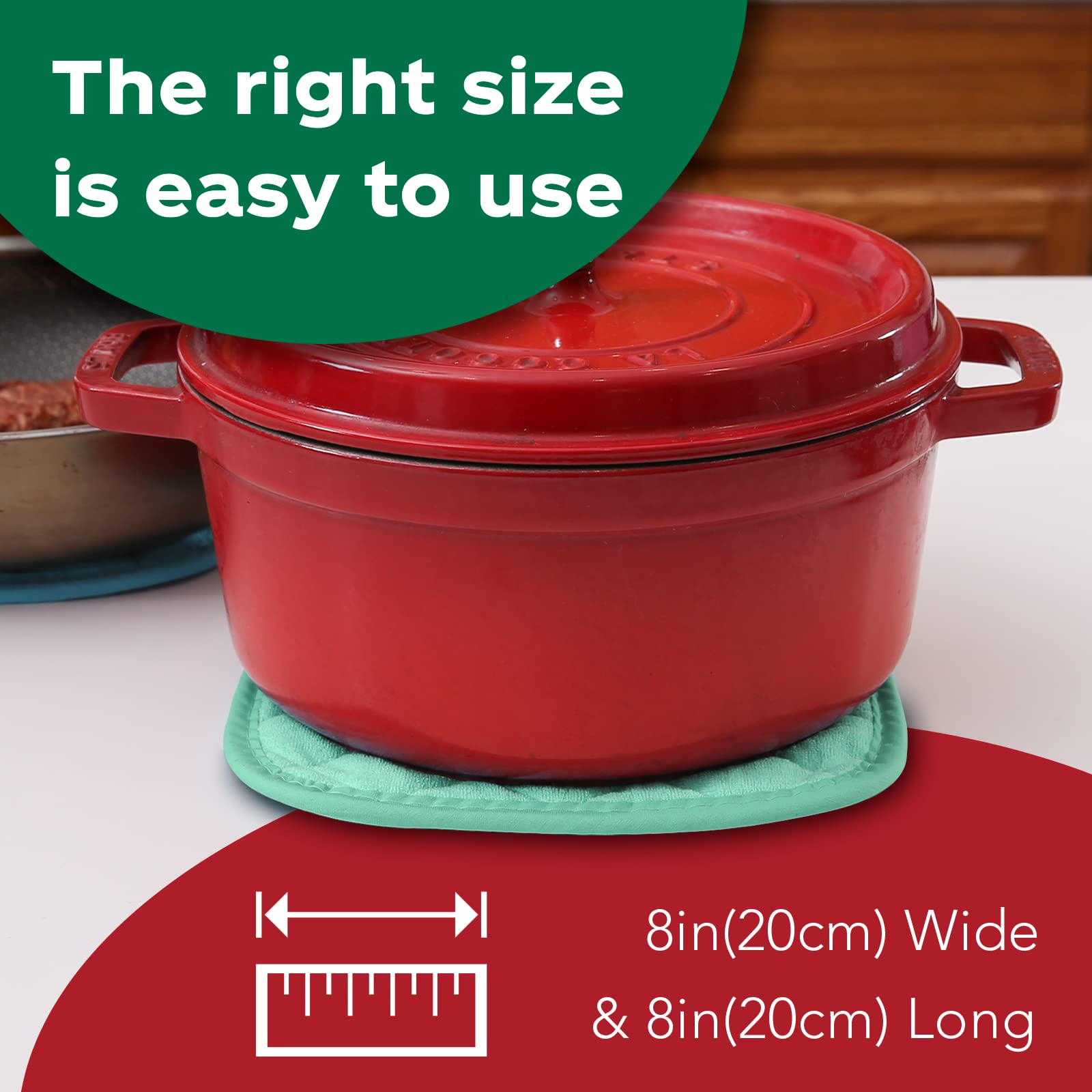 THICKER ENOUGH HOT PADS: Use as hot pads for hot dishes, hot pots and pans, cast iron cooking pots. Protect countertops from scratches, placemat under heavy cast iron set.