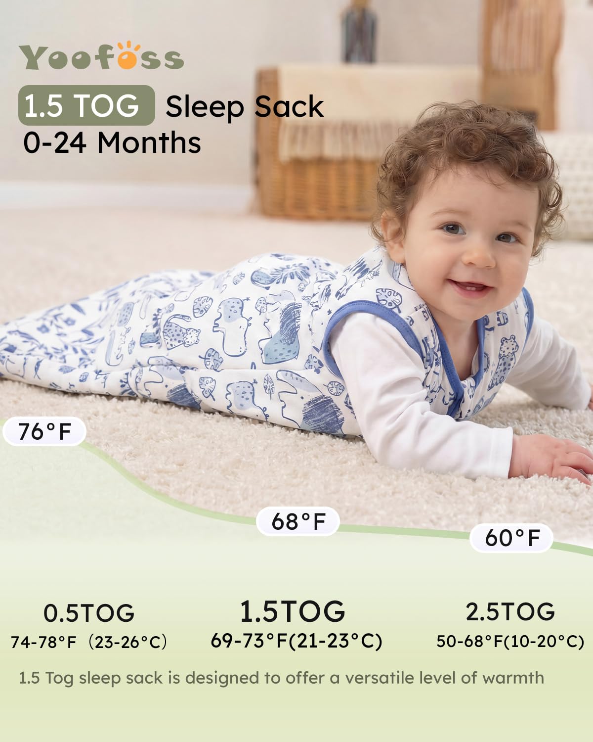 4-Season Use: 1.5 Tog sleep sack is suiable for moderate temperatures from 69 to 73°F as an ideal option for autumn,early winter and spring or taking a nap in air-conditioned rooms during the summer, keeping your baby snug and warm.