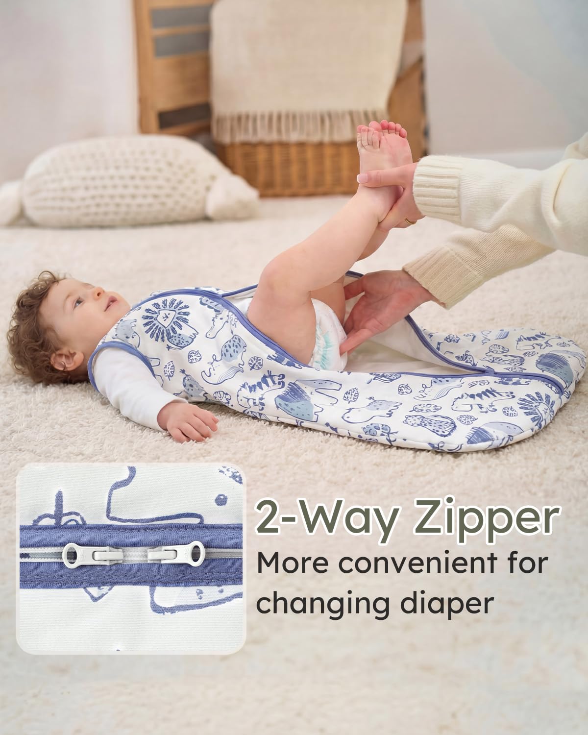 2-Way Zipper and Available Sizes: The top-grade double zipper allows unzip from the bottom for fuss-free diaper changes without disturb baby during the night, and design with zipper garage to protect baby’s face from chafing. There are 4 available sizes for this baby sleep sacks; S for 0-6 Months. M for 6-12 Months. L for 12-18 Months. XL for 18-24 Months.