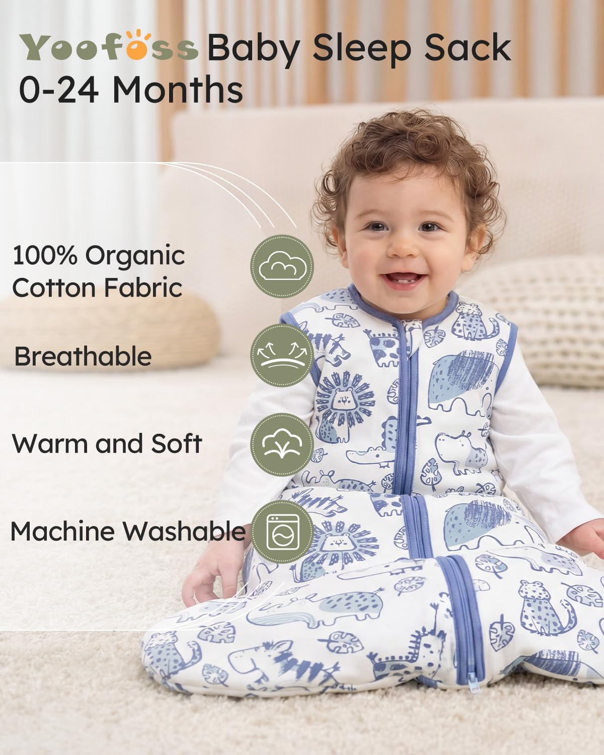 Safety Comes First: Made of 100% organic cotton layers and soft polyester filling , soft and breathable, guaranteeing the utmost comfort and the protection of infant's sensitive skin. Yoofoss sleep sack is certified to meet Global Organic Textile Standard (GOTS), dedicating to ensure your baby's safety and coziness.