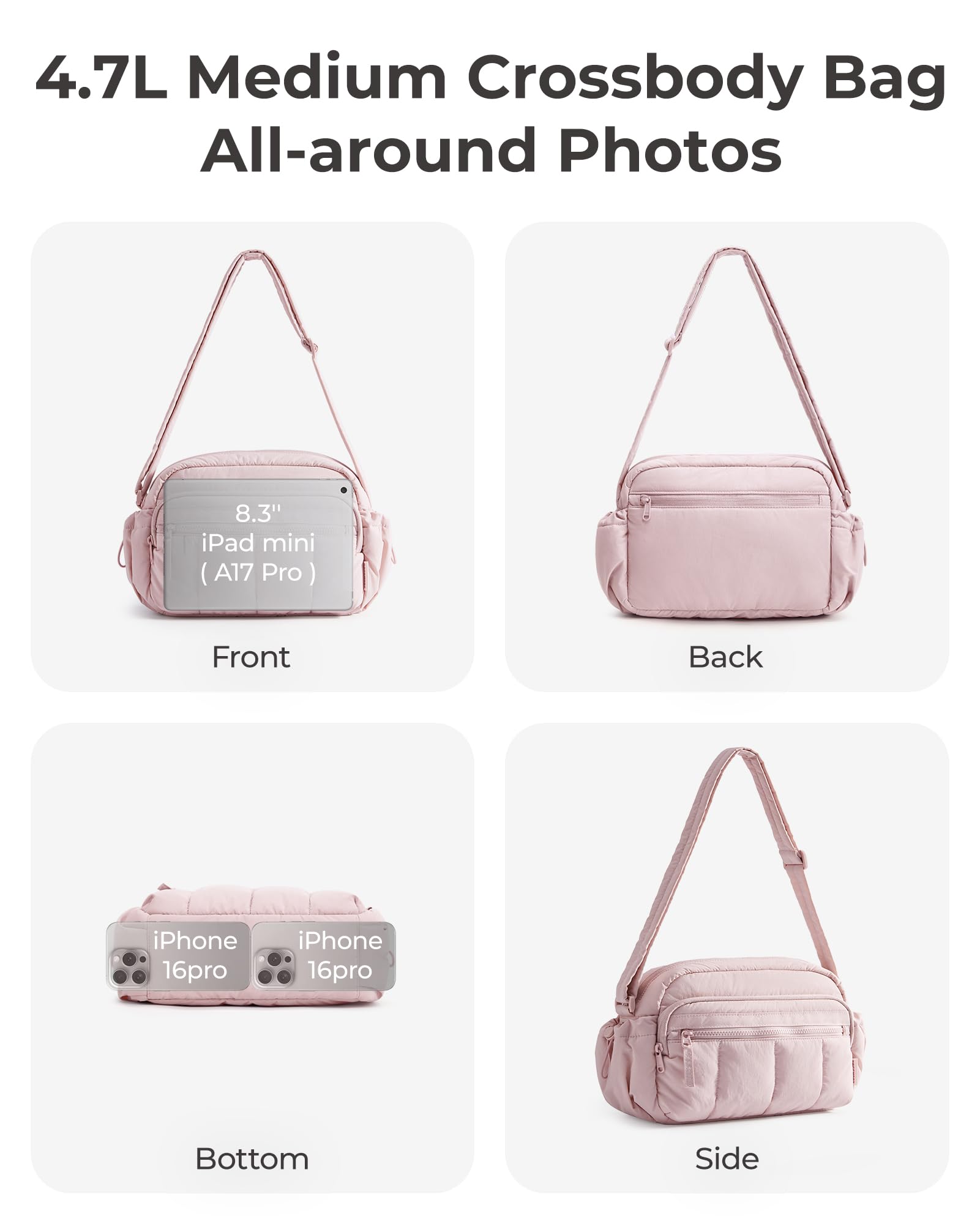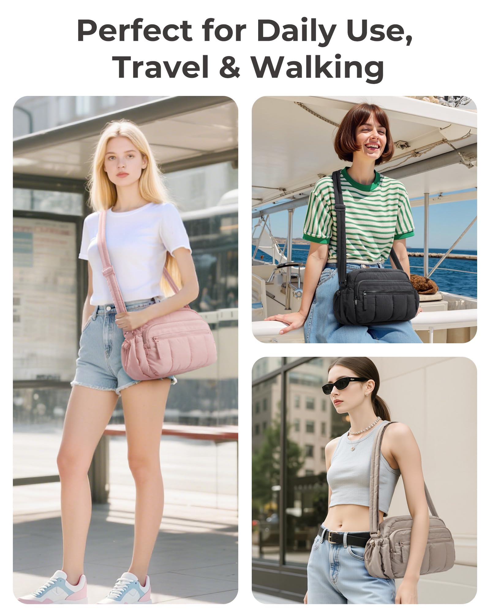 Versatile for All Occasions: Mediun quilted puffy crossbody bag can be used as a purse, handbags, shoulder bag and tote bag. Designed for versatile use - ideal for travel, outdoor activities, gym workouts, cycling, hiking, and everyday carry