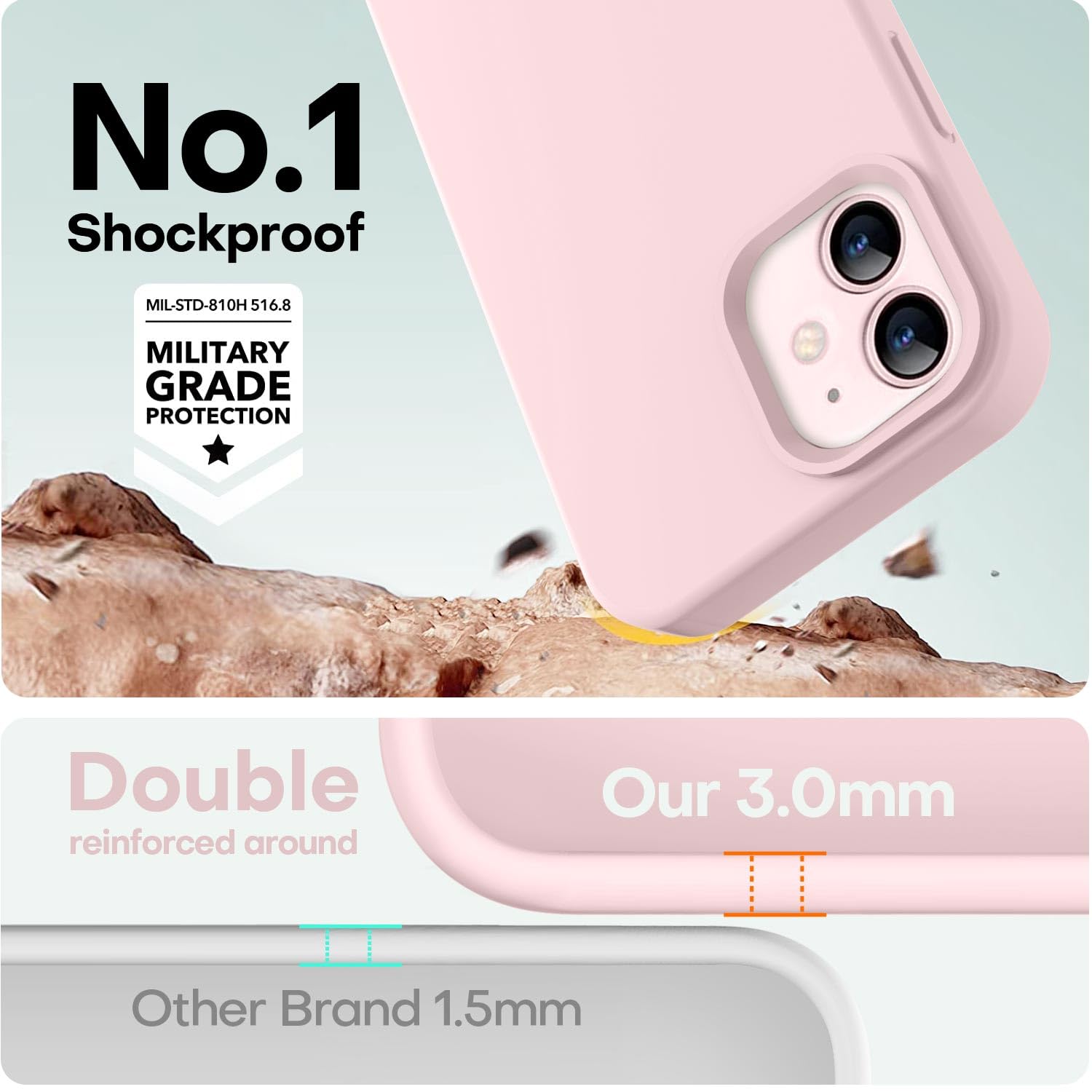 【Enhanced Shockproof Protection】Crafted from soft and shock-absorbing silicone, this case effectively cushions your phone against accidental drops and impacts. The raised case edges of the camera and screen can effectively provide the daily protection from bumps and hard-hits of the back and sides for your iPhone.