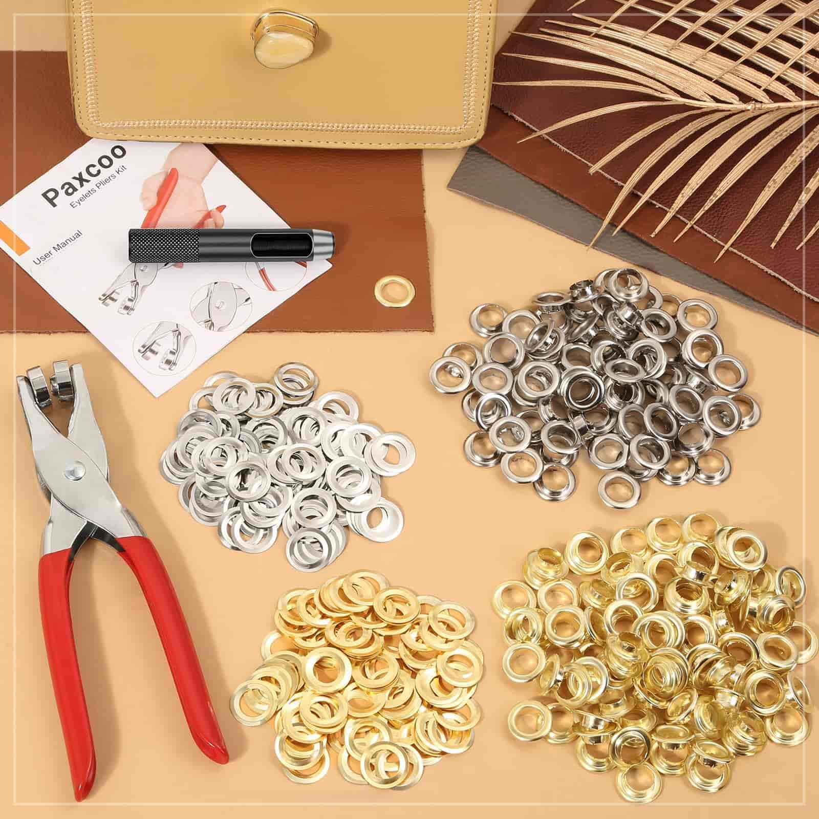 Necessary Grommet Eyelets Washers - This 1/2 inch(inside hole size, An error range of 0.1 mm to 0.3 mm is normal.) grommet tool kit comes with 320pcs metal eyelets washers in silver and gold, which can help make eyelets stronger, and not easy to loosen. There is also a detailed manual to help you better use the eyelets pliers set