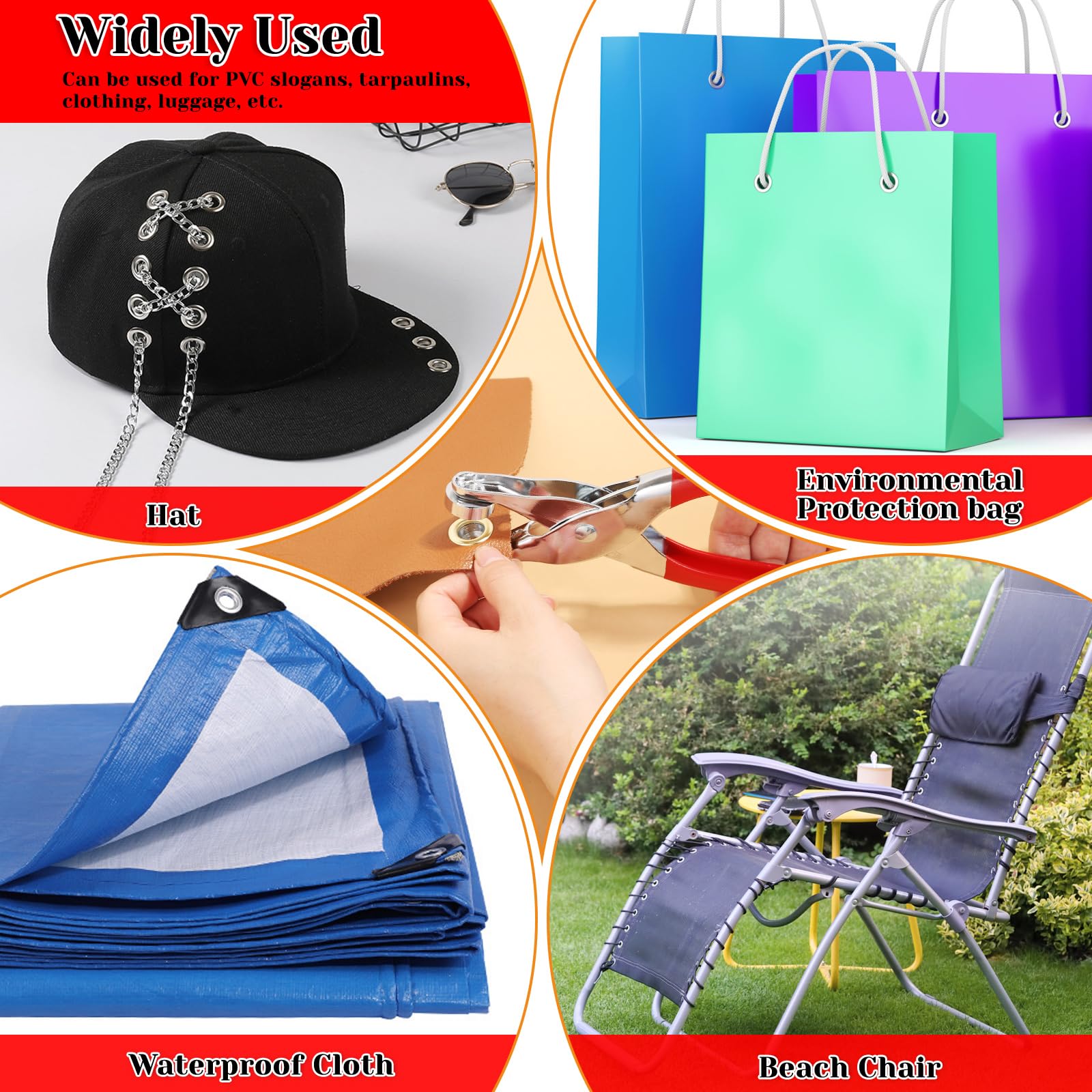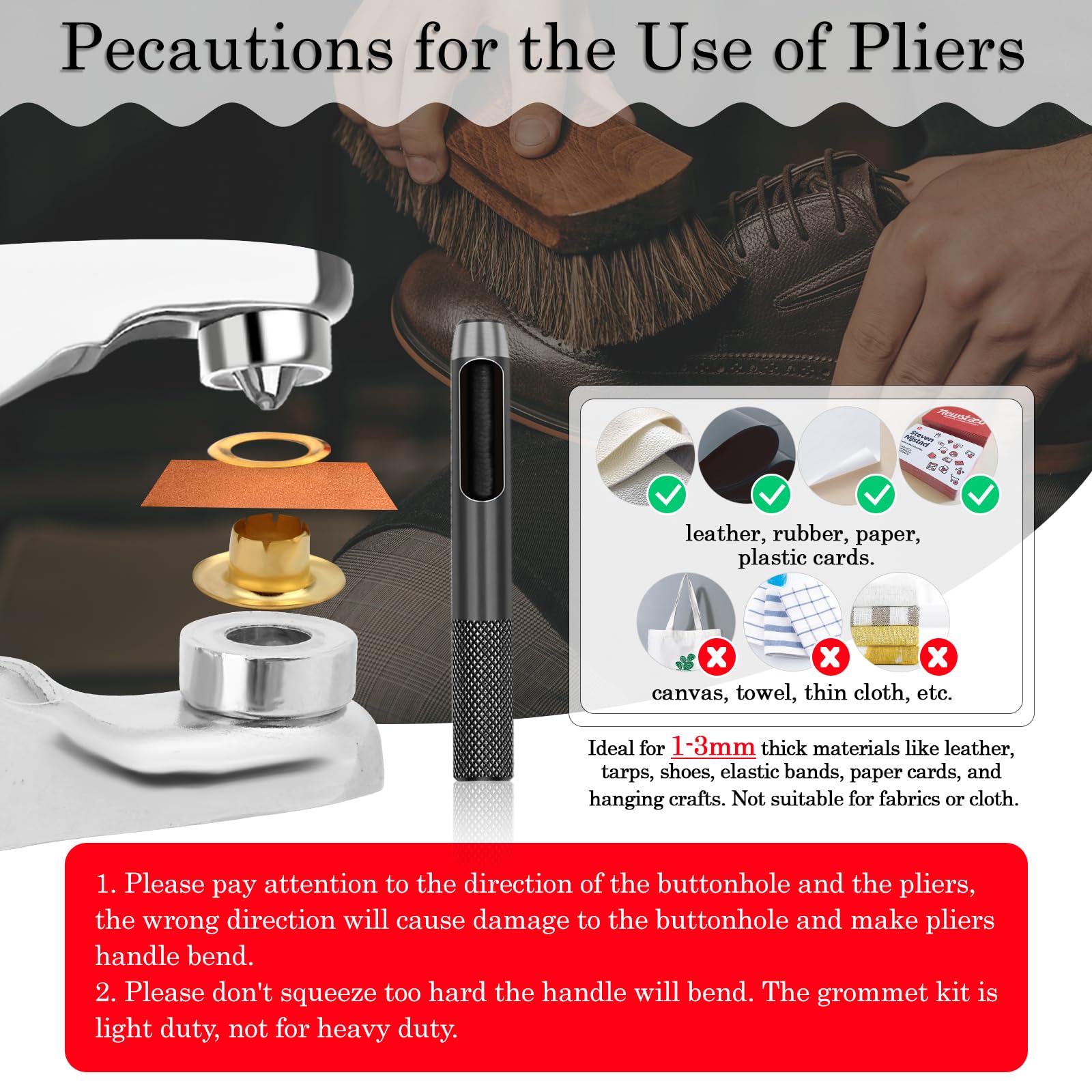 Intended Use - The metal grommets are light duty, more for decoration, can’t hold heavy pulling. This grommets kit is ideal for 1-3 mm thick materials like leather, tarps, shoes, elastic bands, paper cards, and hanging crafts. Not suitable for fabrics or sewing projects
