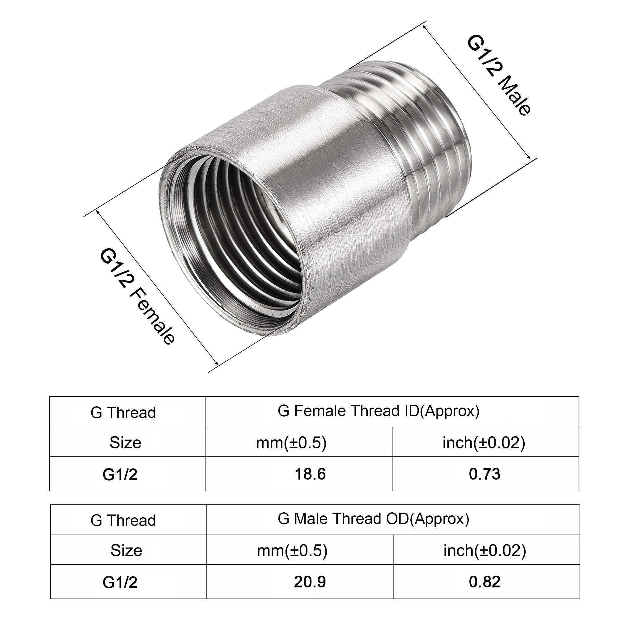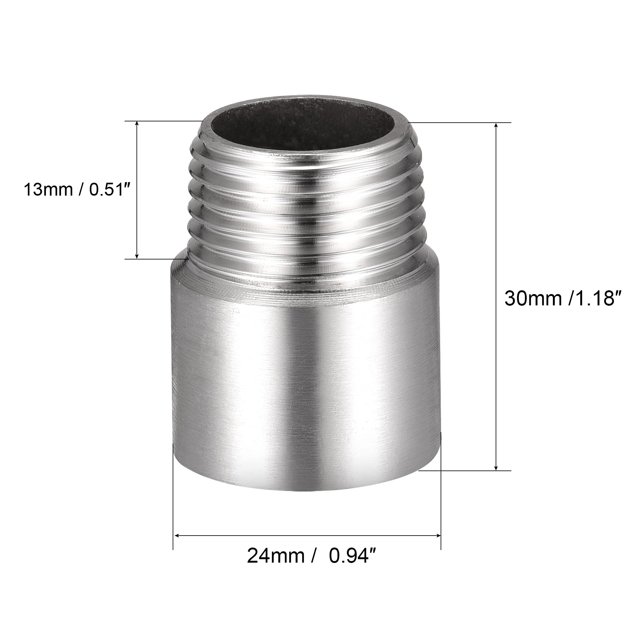 Features: Made of 304 stainless steel, sturdy and durable, with high strength to support your shower head. Used for connecting and extending shower arm, perfect shower adjustment. The pipe fitting can also be used in the garden, swimming pool and more. Note: Before ordering, please confirm the right size. Specifications: Material: 304 Stainless Steel Male Thread Size: 1/2PT(Approx OD 20.4mm) Female Thread Size: 1/2PT(Approx ID 18.3mm) Thread Length: 13mm / 0.51 inch Total Size: 30mm x 24mm / 1.18 inch x 0.94 inch(L*D) Package Content: 1 x Stainless Steel Pipe Fitting