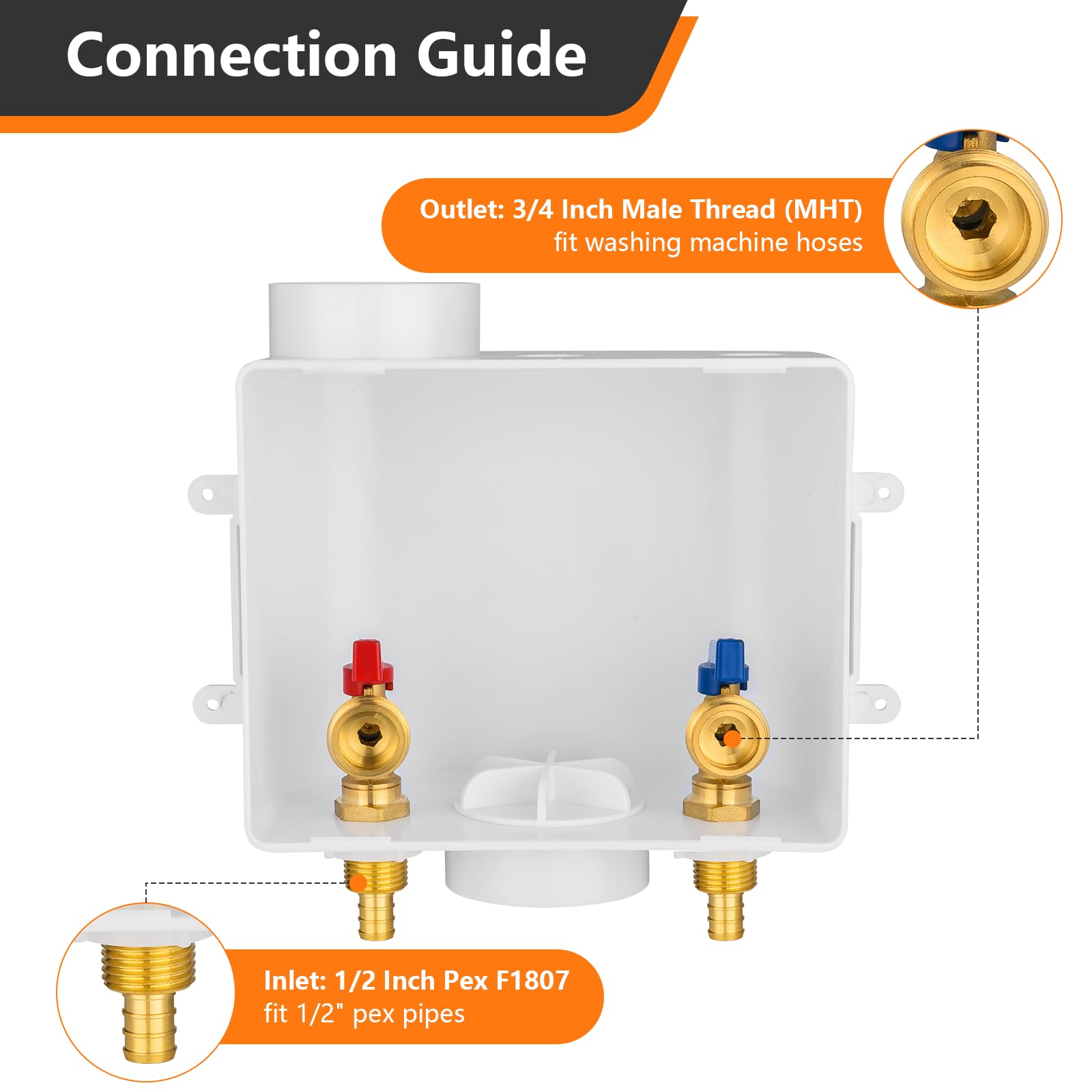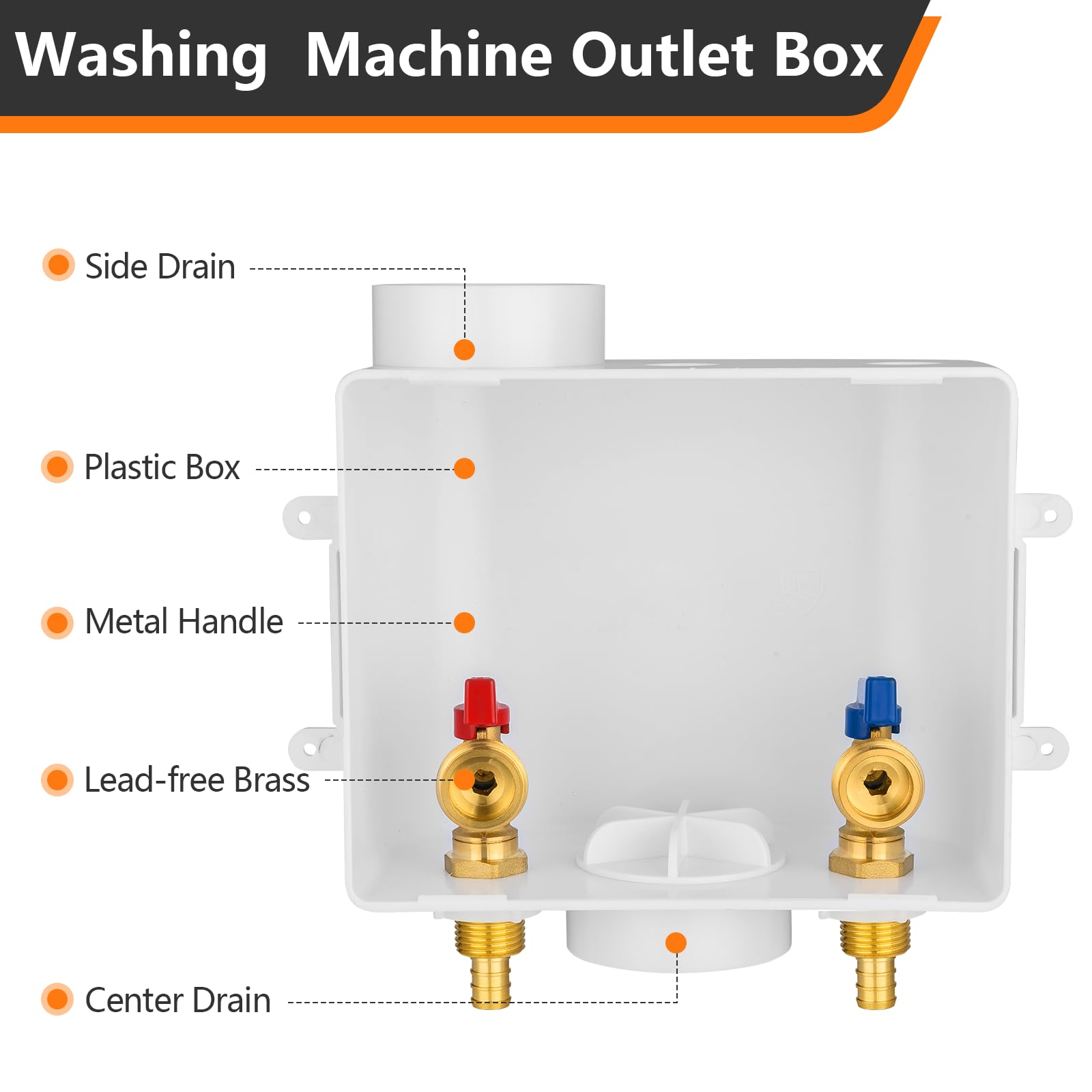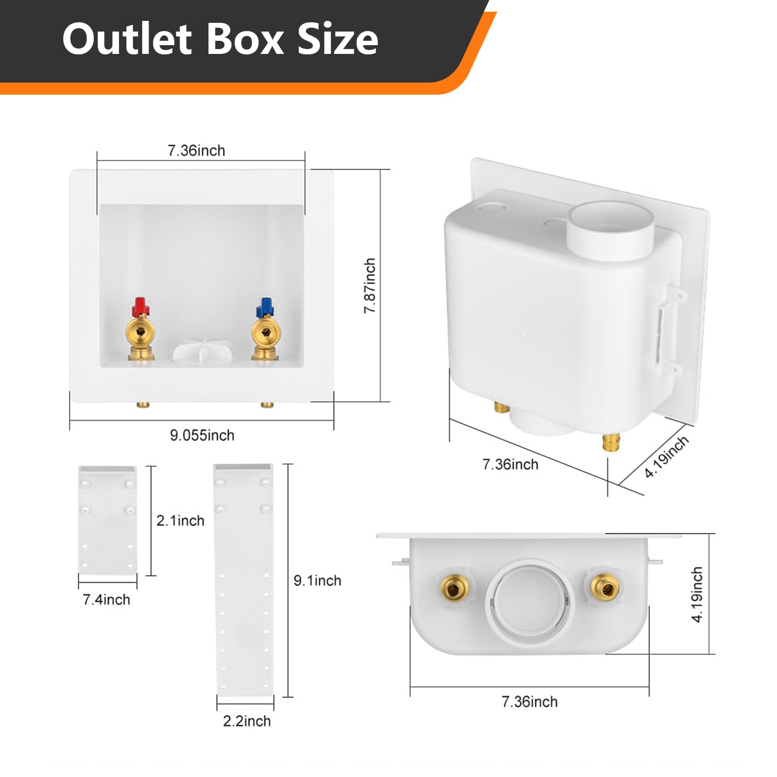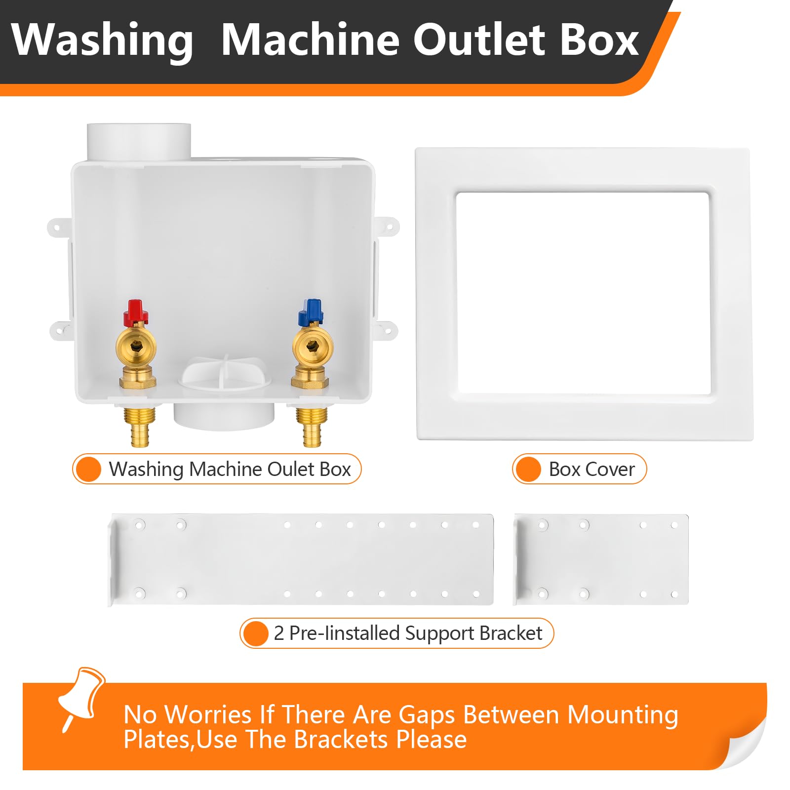 PACKAGE INCLUDE:1.washing machine outlet box 2.pre-installed support brackets 3.protective box cover