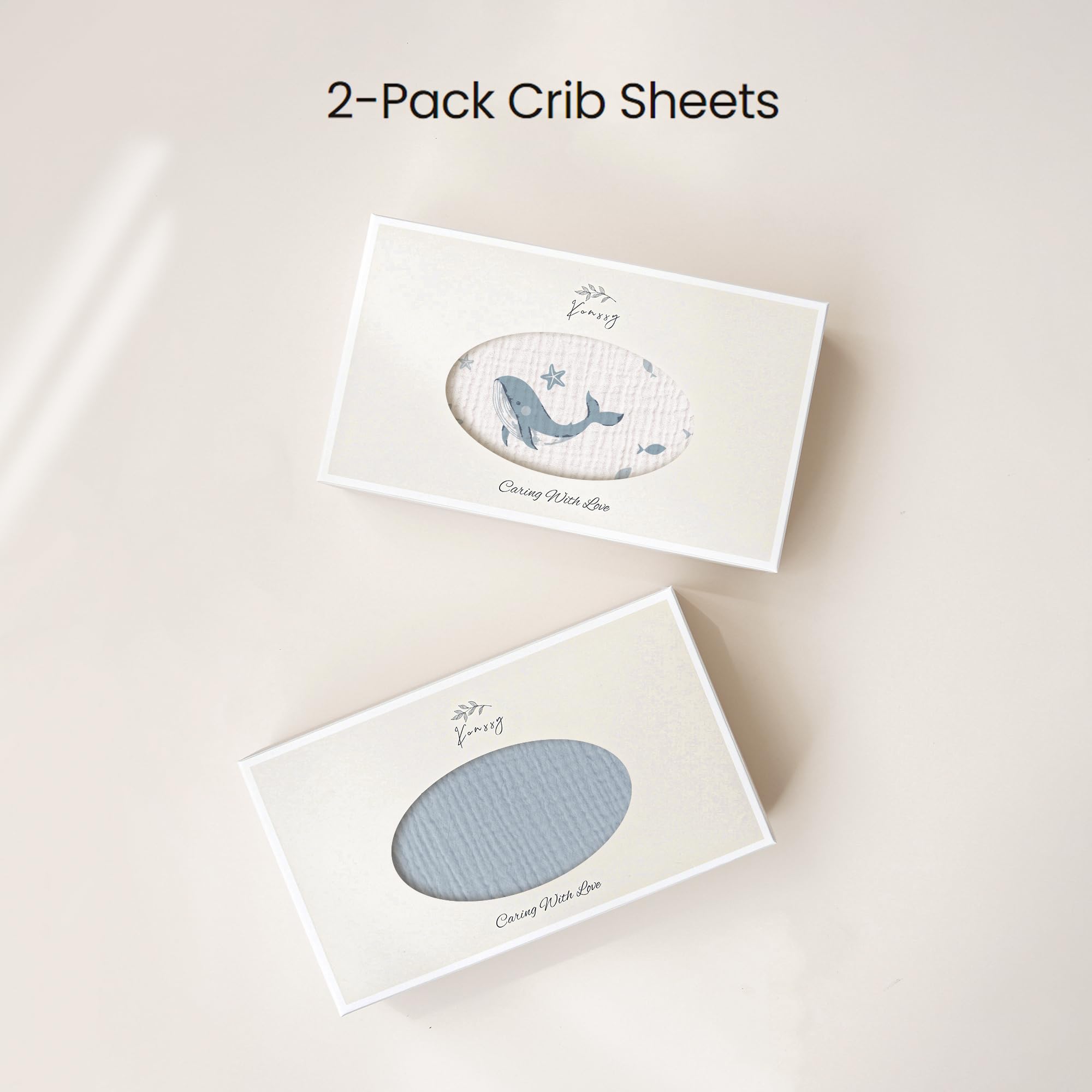 Cute Design: Our muslin crib sheet adorned have 2 PCS different color prints will make your baby look more adorable, suitable for both boys and girls! Lay your baby down to sleep in a soft and breathable crib sheet