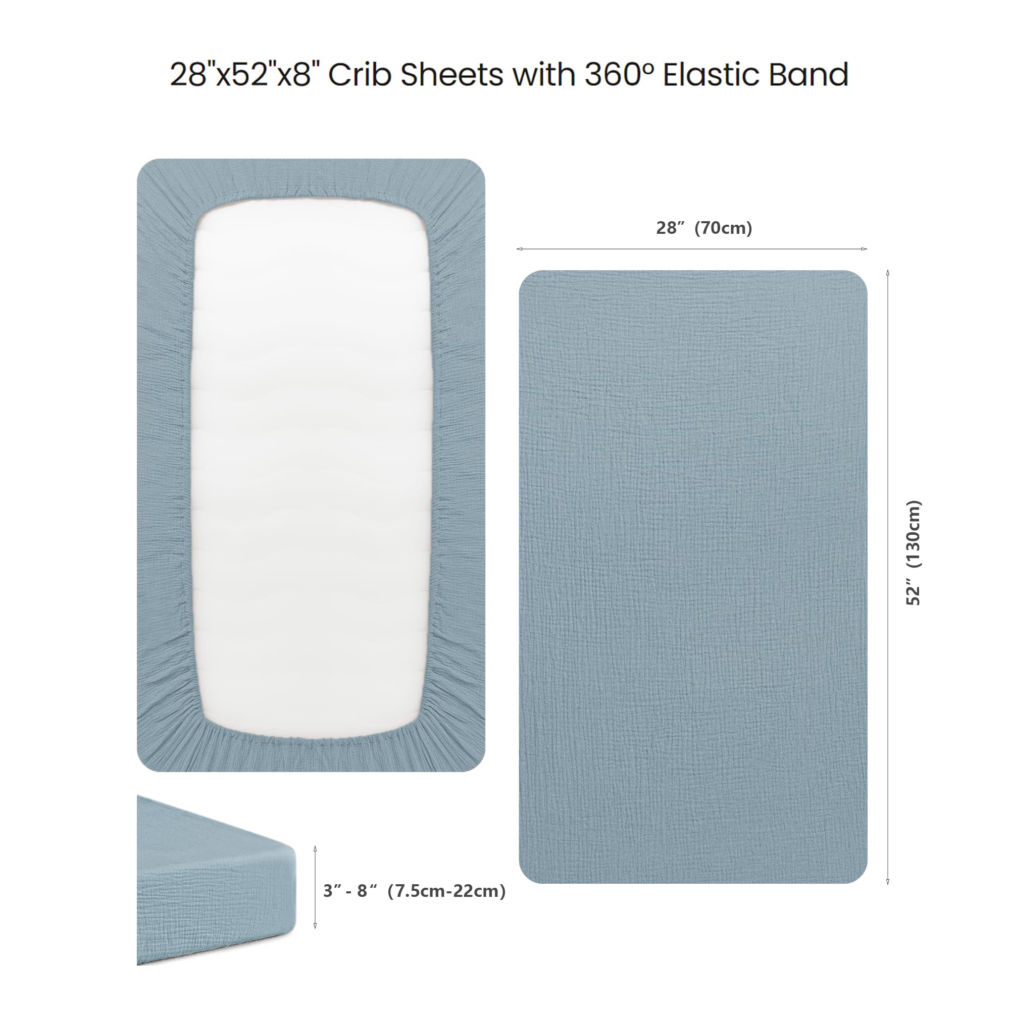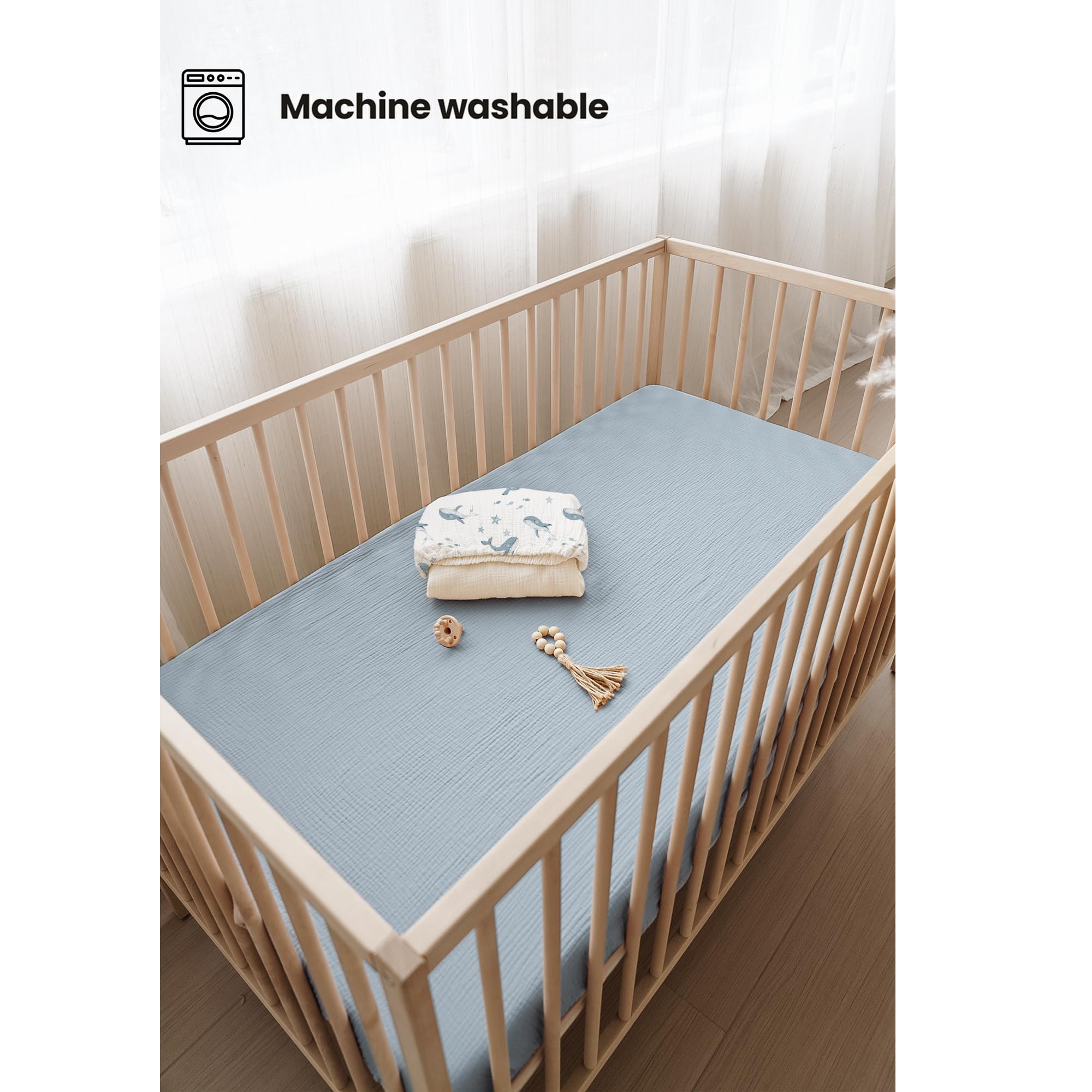 Super Soft and Breathable: These muslin crib sheets are made of 100% cotton (Muslin) for breathable with skin-friendly soft touch and retain its color after washed for several times. Keep your baby super comfortable and soft with this crib sheet