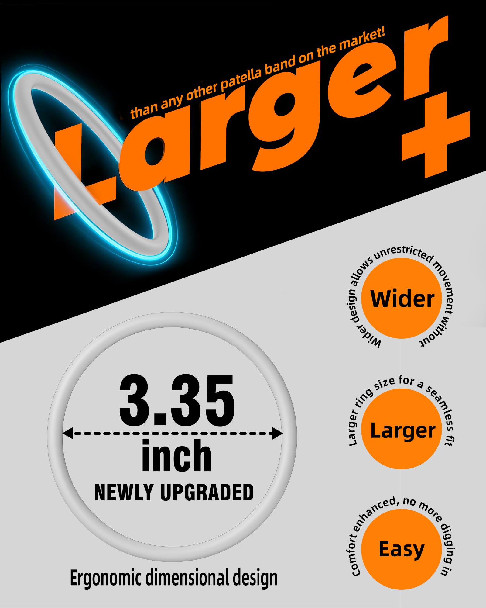 Product Size: The GREBIKE patella band is made from high-quality silicone, with great elasticity and stretchability, suitable for most users. It fits patellar circumferences of 11.4 to 16.5 inches, so you won’t have to worry about finding the right size.