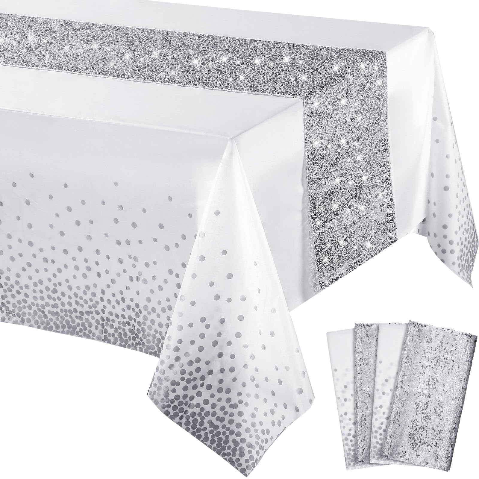 What you will get: the package includes 2 pieces confetti dot plastic tablecloth and 2 pieces sequin table runner, several colors for you to choose, specific color as the picture shown, nice combination for you to use in daily life or important occasions