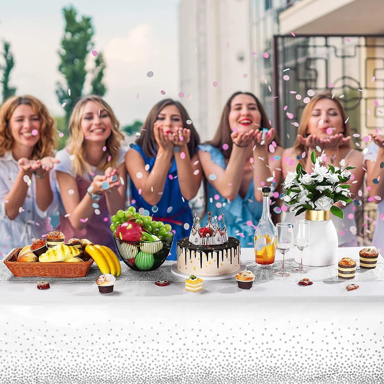 Shiny design: the rectangle table cloth is designed with the plain colors background and printed with foil polka dot, and the other confetti tablecloth adopts glittery sequin, delicate and attractive, which can add more charms to your dinner table