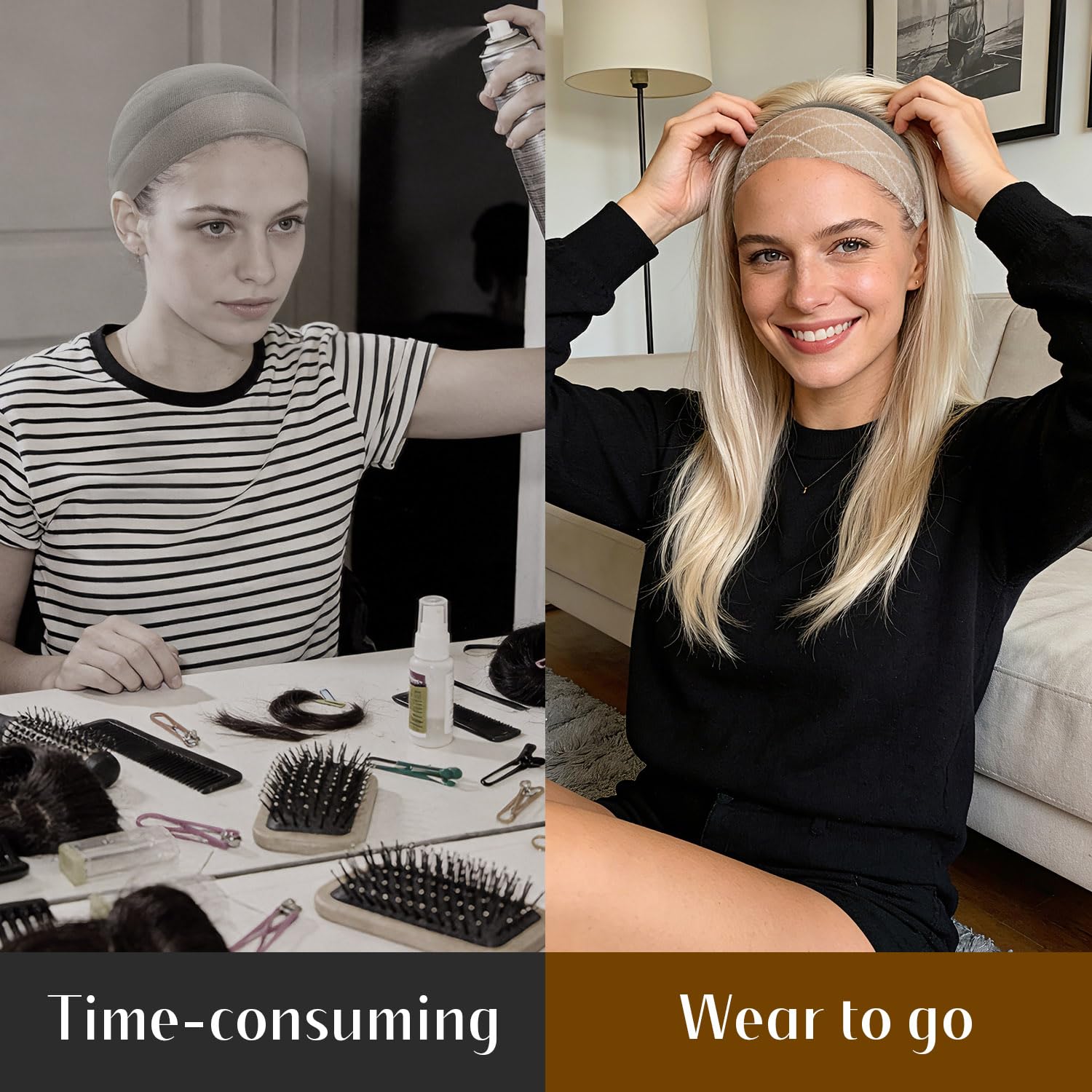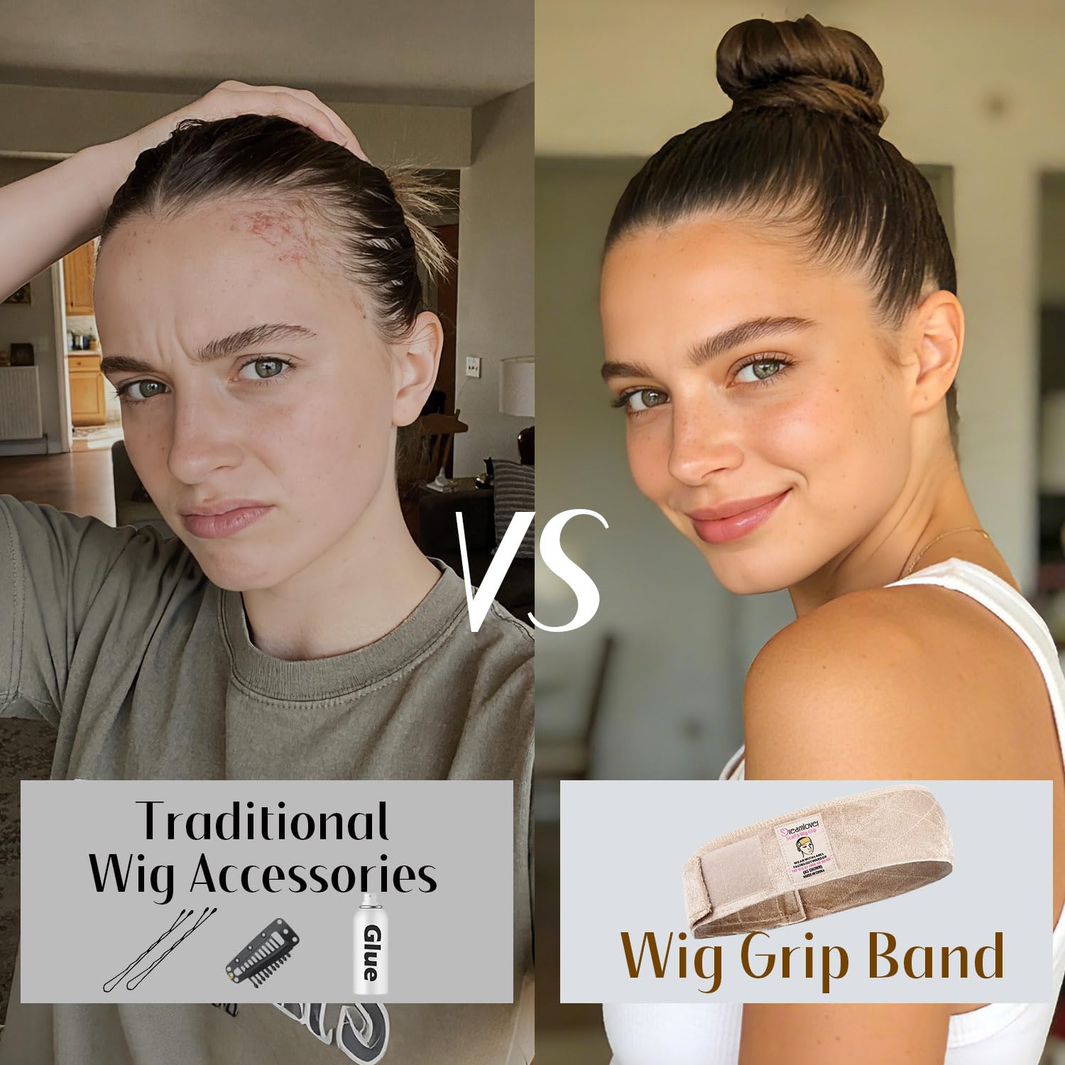Lengthened hook and loop fastener design of the wig grip band allows you to adjust the most comfortable tightness on your hairline, which is good for fitting different head sizes.
