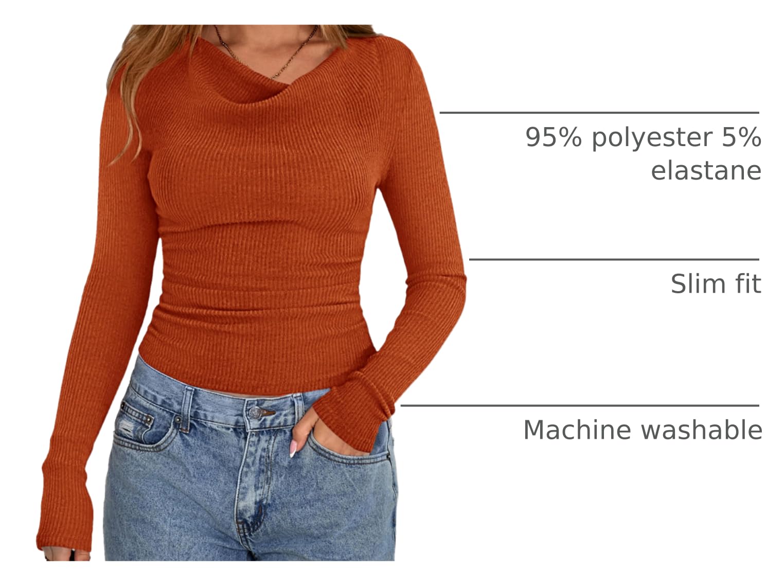 FEATURE: S=US 4-6, M=US 8-10, L=US 12-14, XL=US 16-18, XXL=US 20; Womens Fall Tops; Long Sleeve Shirts For Women; Cowl Neck Tops For Women; Y2K Clothes; Fitted Tops For Women; Crop Tops For Women; Ruched T-Shirts; Basic Tees; Stretchy Ribbed Knit Blouses; School Outfits For Teachers