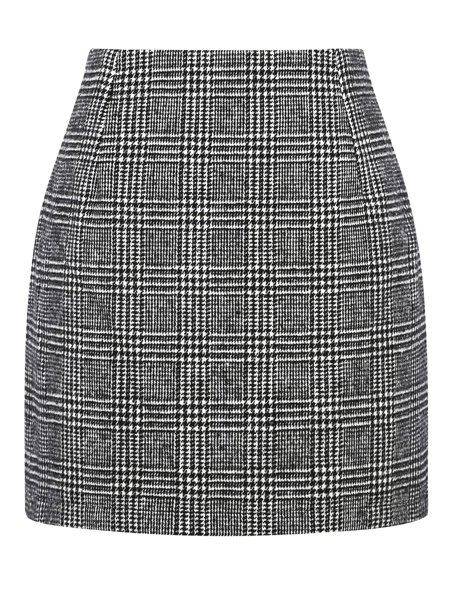 Style: Casual slim fit bodycon flannel plaid mini skirts for junior/lady