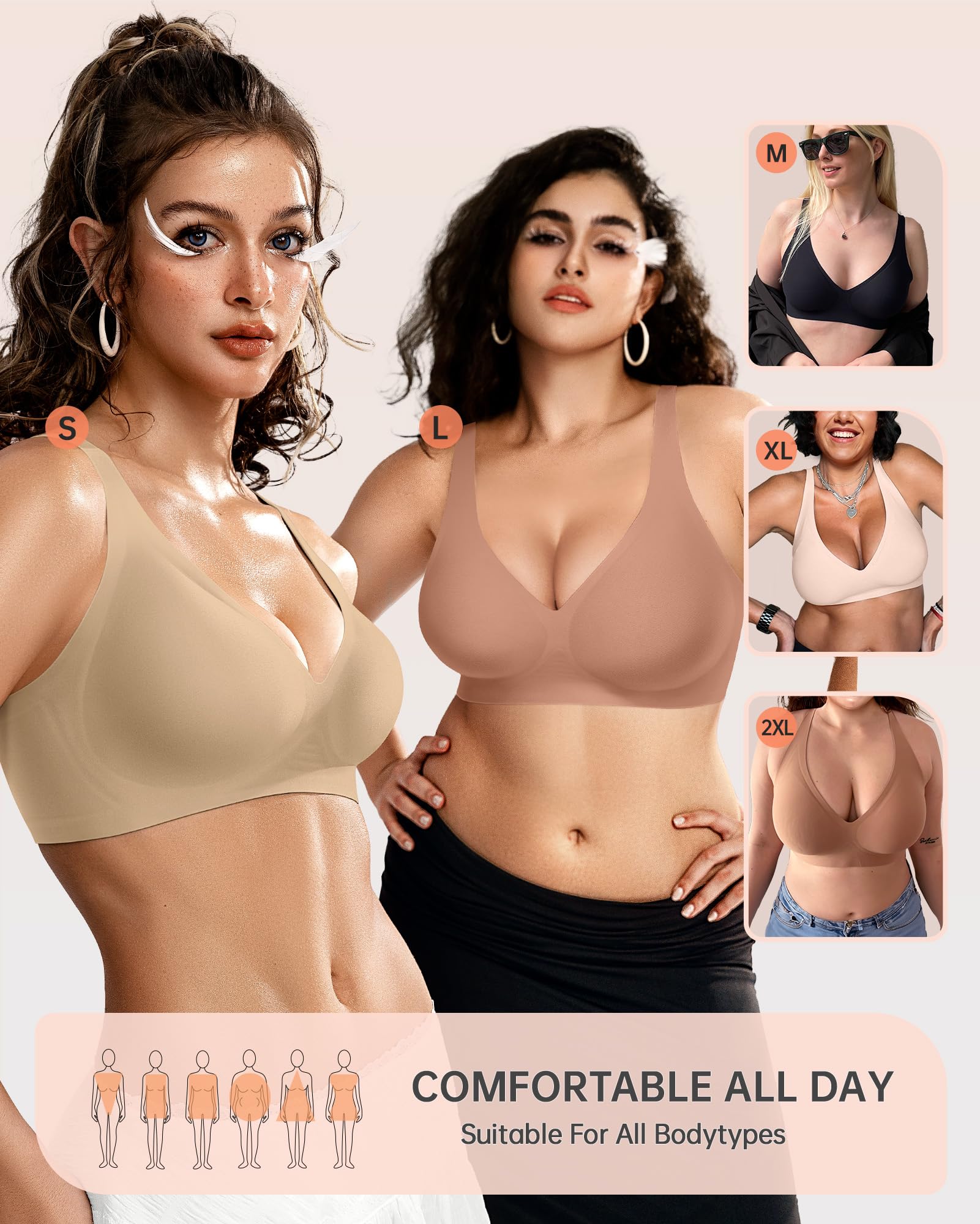 For All Occasion - These seamless bras ensure invisibility under clothing from tshirts to backless tops dresses, giving you the freedom to mix and match with different styles. Ideal for all day wear, work, sleep, home, party, light exercise, dance, yoga. Please follow our size chart to choose the suitable size. Do not bleach. Do not tumble dry. Hang to dry.