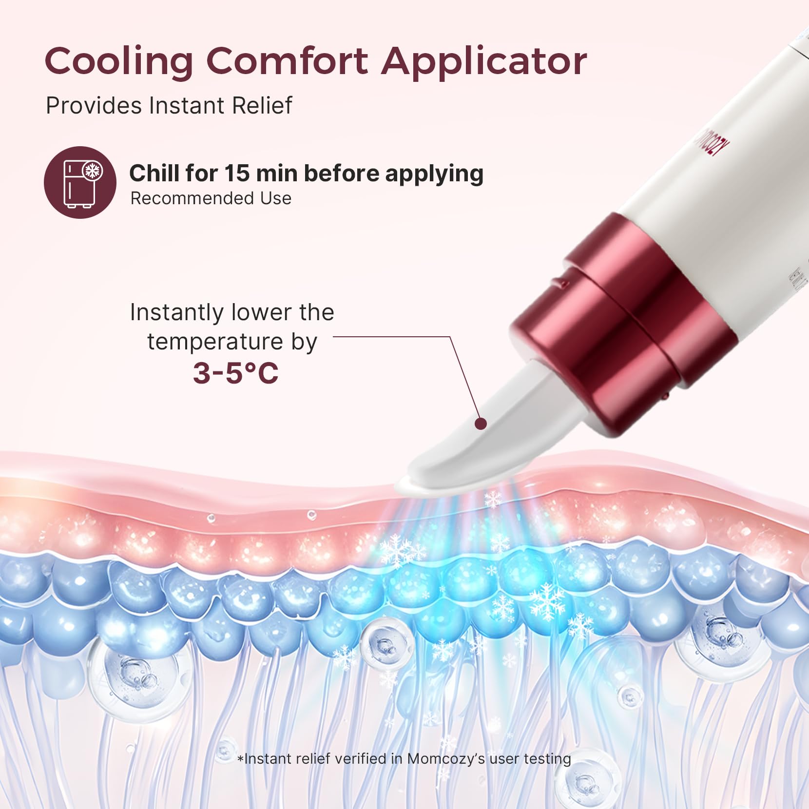 Cooling Ceramic Tip for Instant Comfort. Touch-free ceramic applicator glides smoothly over delicate skin for a clean, cooling, and precise application, providing instant relief and gentle care to nipples.
