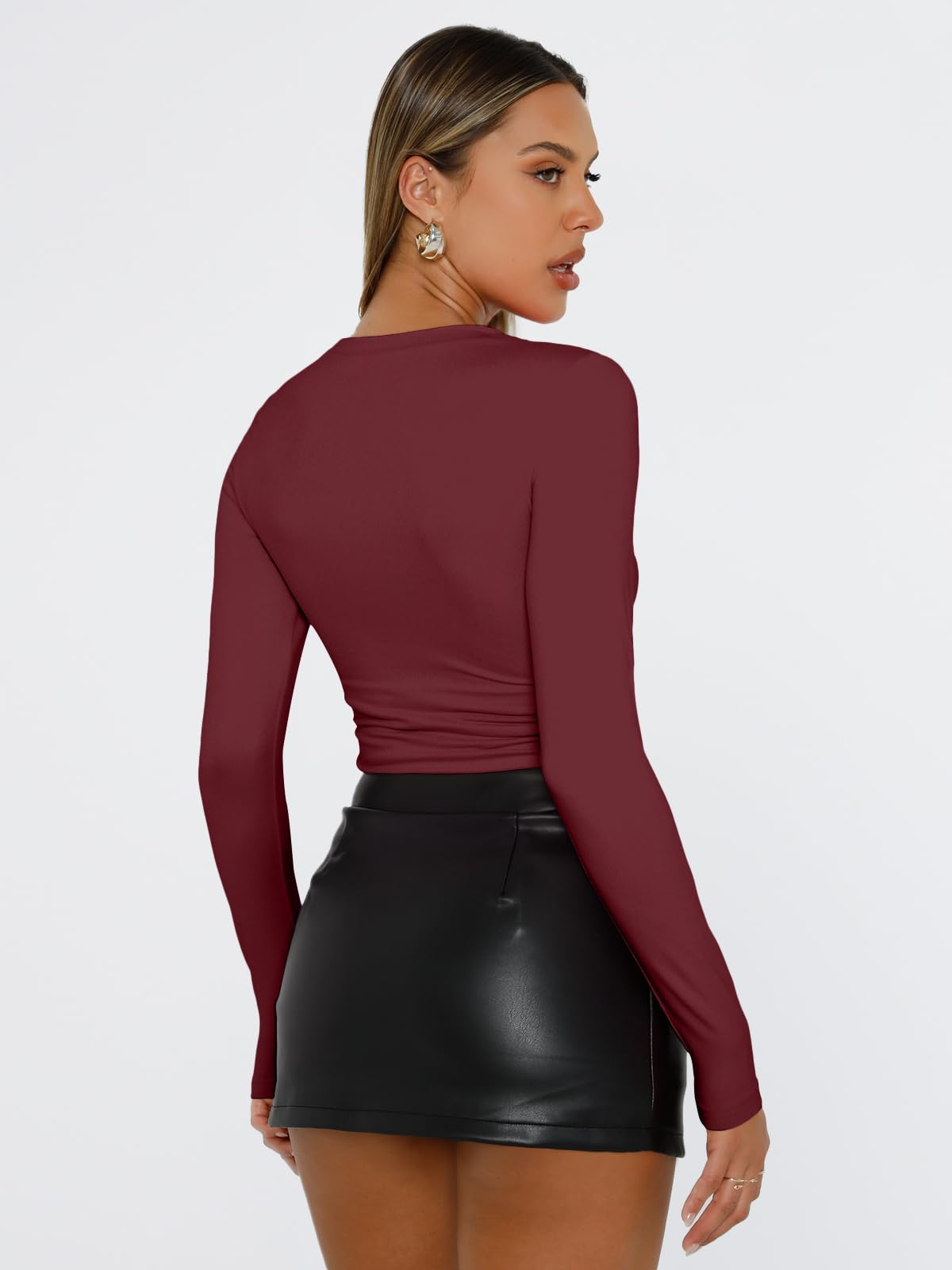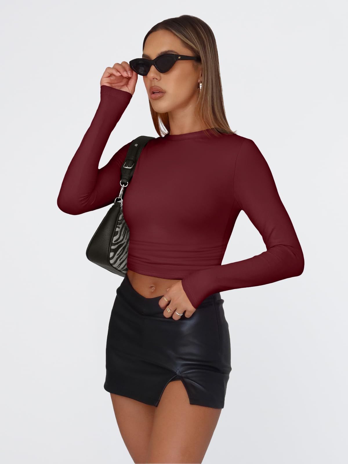 Design: Cropped and stretch fitted style,crew neck, tight underscrubs layer,you can wear it regularly or fold it up like a crop top,cute,slim fit,casual y2k style fashion