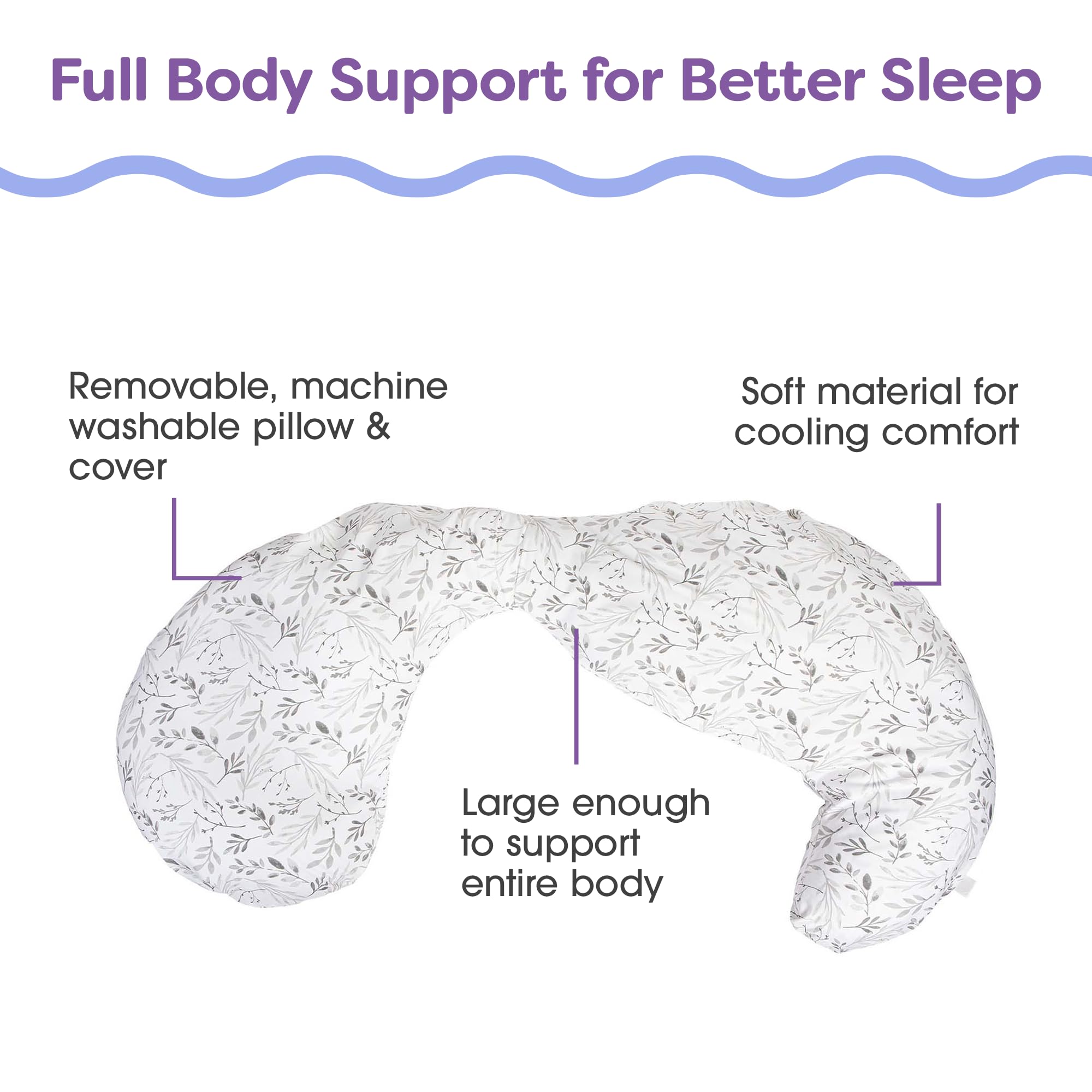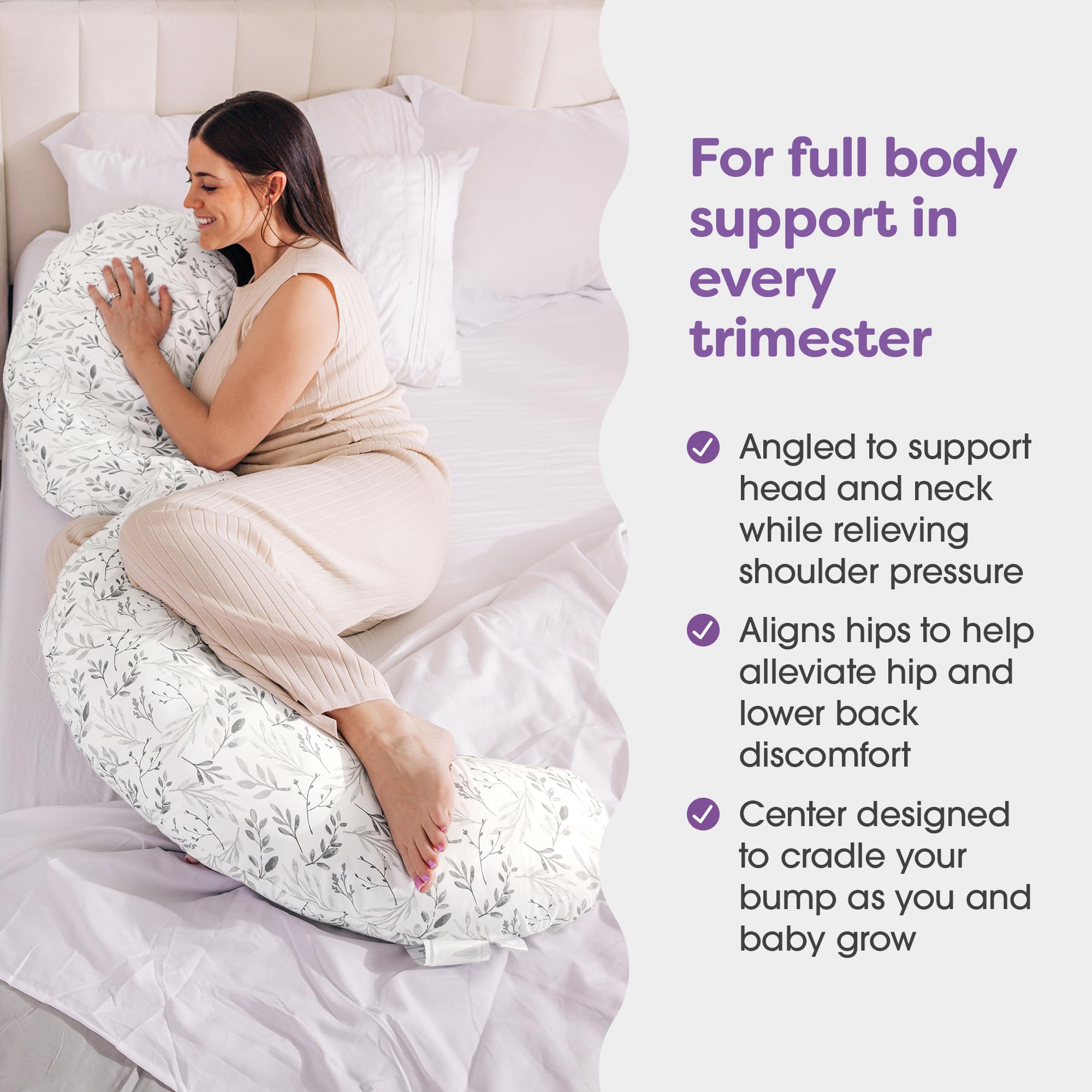 Boppy Total Body Pregnancy Pillow, Gray Scattered Leaves, Supportive Pregnancy Body Pillow for Versatile Full Body Use, Contoured Shape at All Stages
