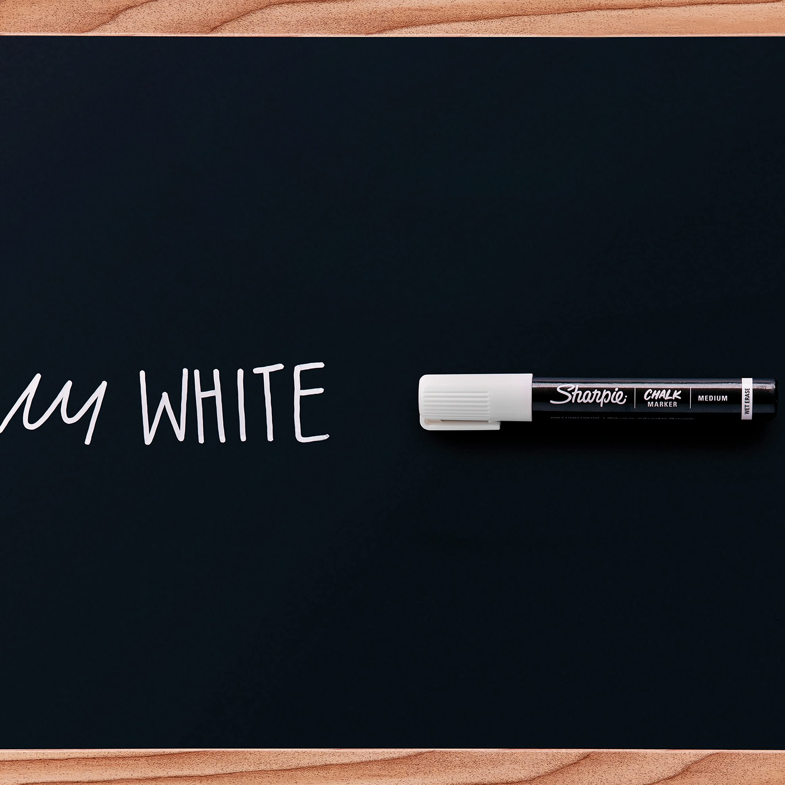 Make your writing or drawing stand out with Sharpie Chalk Markers. These brilliant chalkboard markers mark brightly on black boards, light boards, white boards, windows, glass, and more. And with a damp cloth, they wipe off for convenient cleanup. Depend on these markers for eye-catching displays or writing in the classroom, your business, or home.