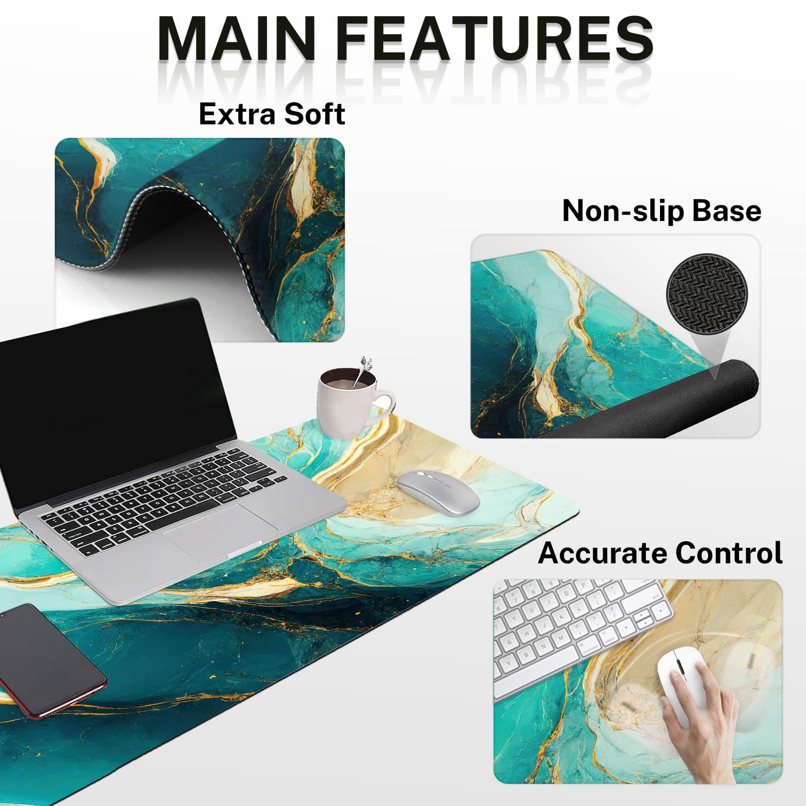 Ultra-Smooth Surface for Precision:The smooth fabric surface of the desk mat allows for easy,precise mouse movements.It also provides a comfortable environment for your hand during operation.The surface is optimized for fast movements without sacrificing speed or control during your work or gaming sessions.It is compatible with both mechanical and optical mice.