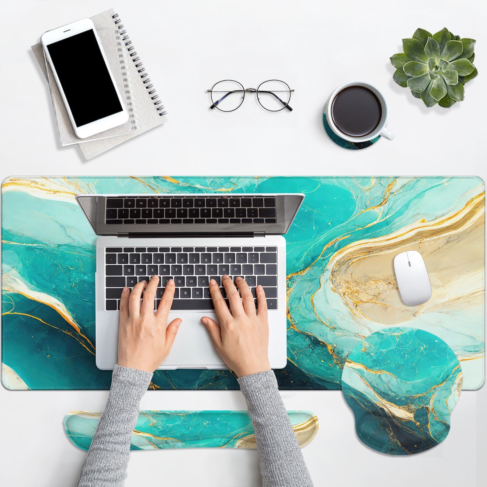 Stylish and Vibrant Design:Our extended mouse pad and keyboard wrist rest feature advanced printing technology,resulting in clear,vibrant patterns that add a touch of fun and relaxation to your busy life.Ideal for study,work,gaming,or as an elegant decor,these non-slip desk pads with wrist support cater to all your needs.