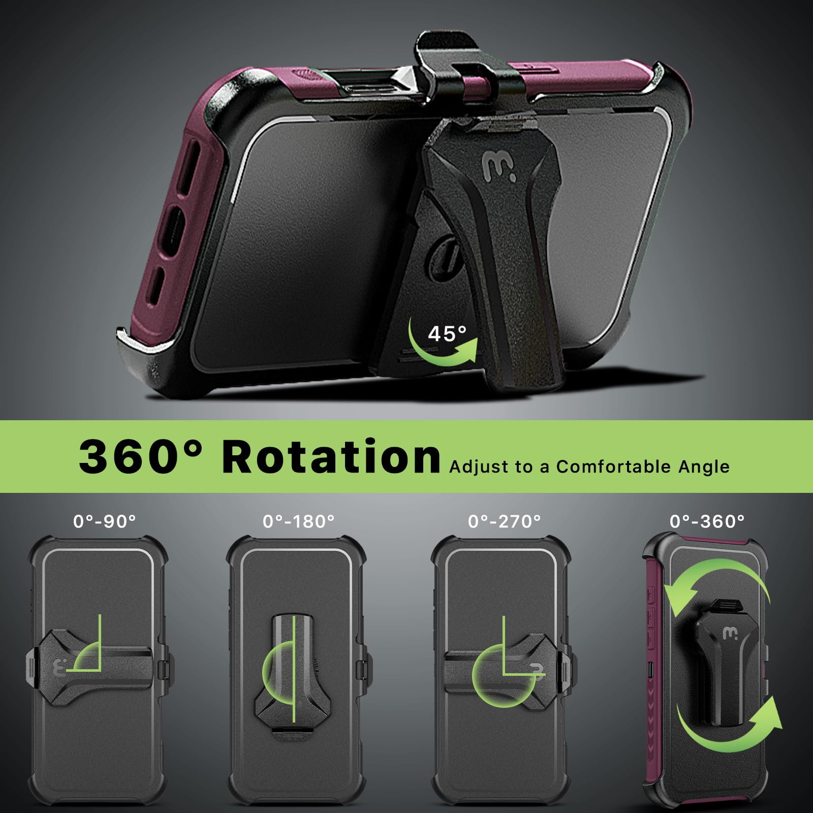 Versatile Holster Clip: Attach the Detachable Holster Clip to Your Belt or Bag for Secure and Easy Device Access. It Also Functions as a Convenient Kickstand, Allowing Hands-Free Video Viewing in Any Orientation.
