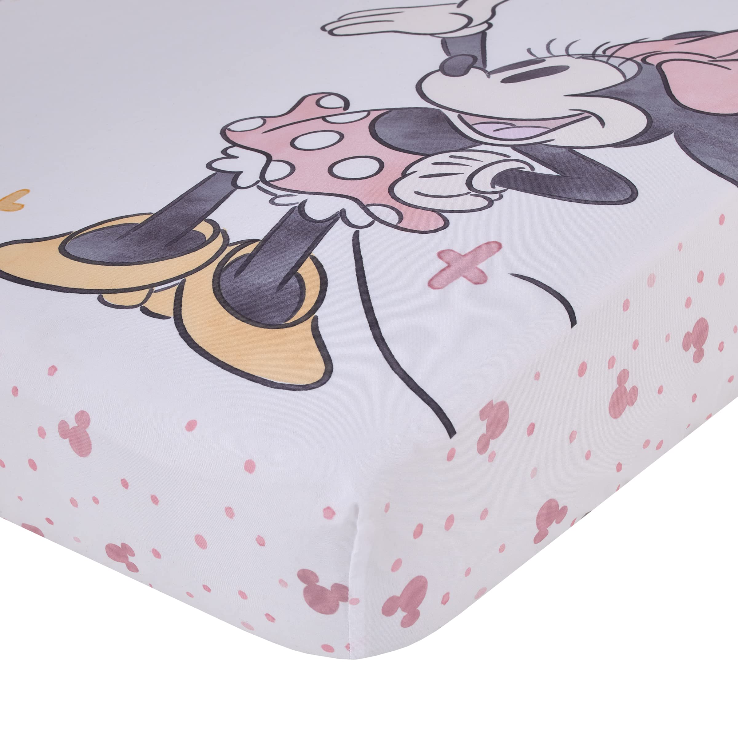 Minnie Mouse is a sweetheart on this adorable photo op fitted crib sheet!