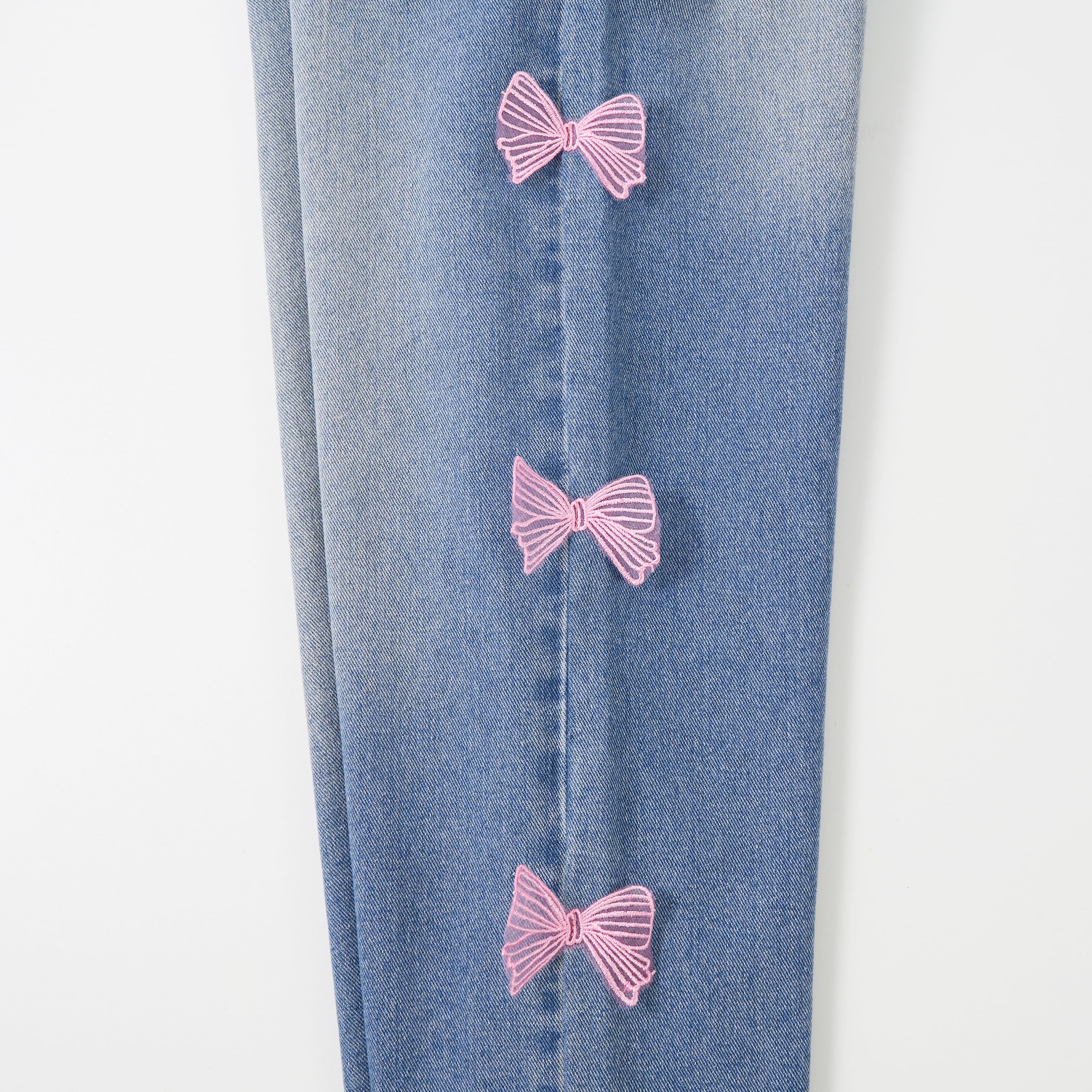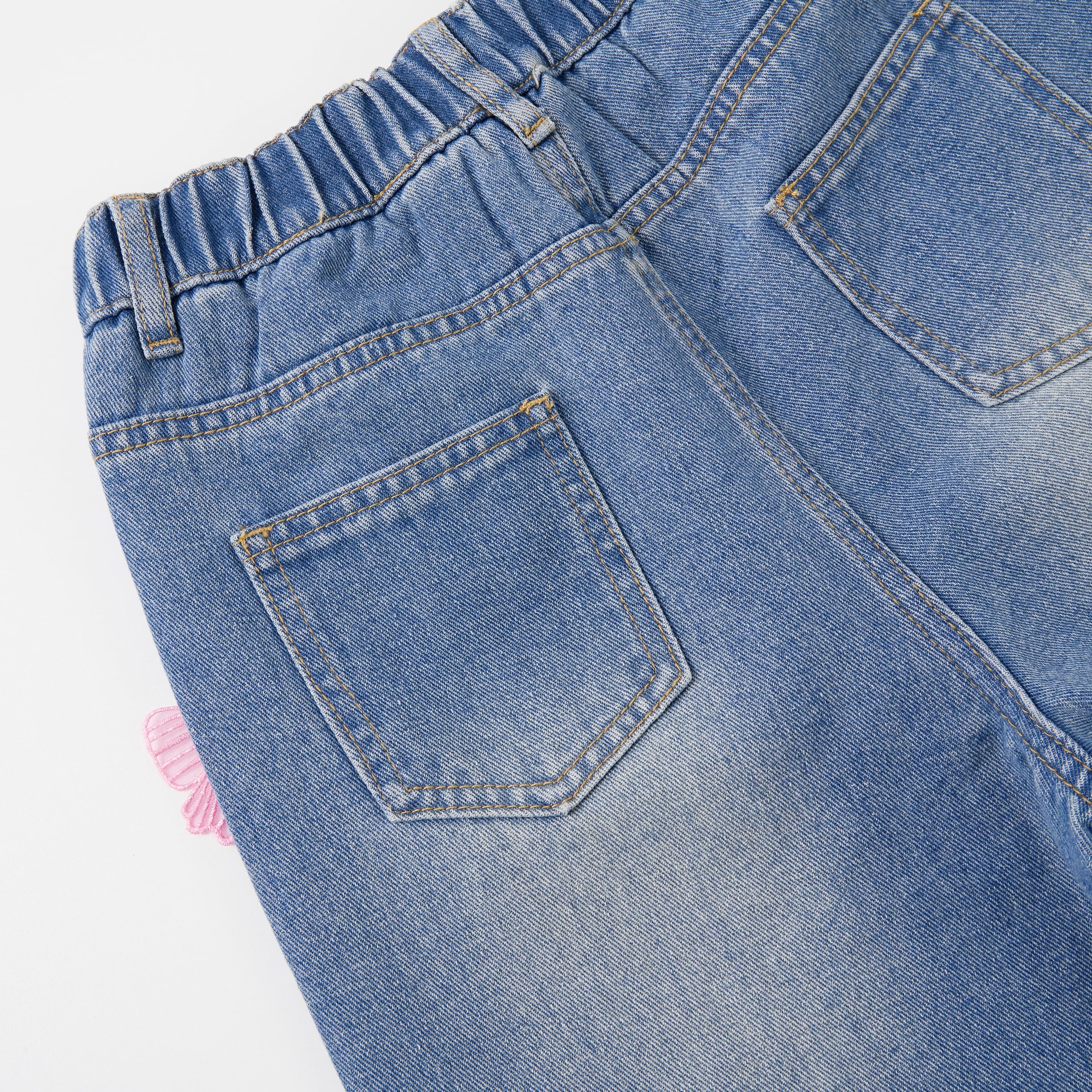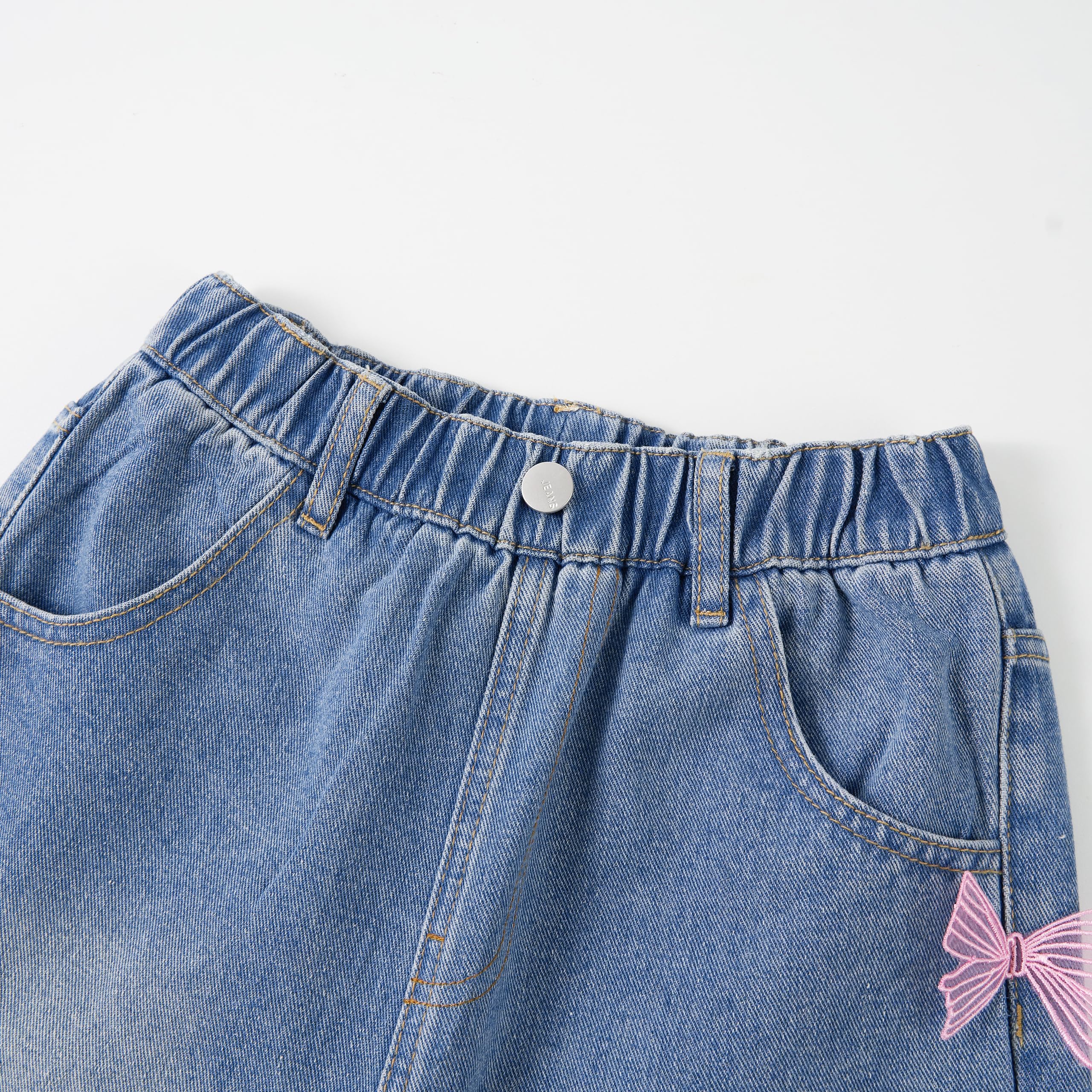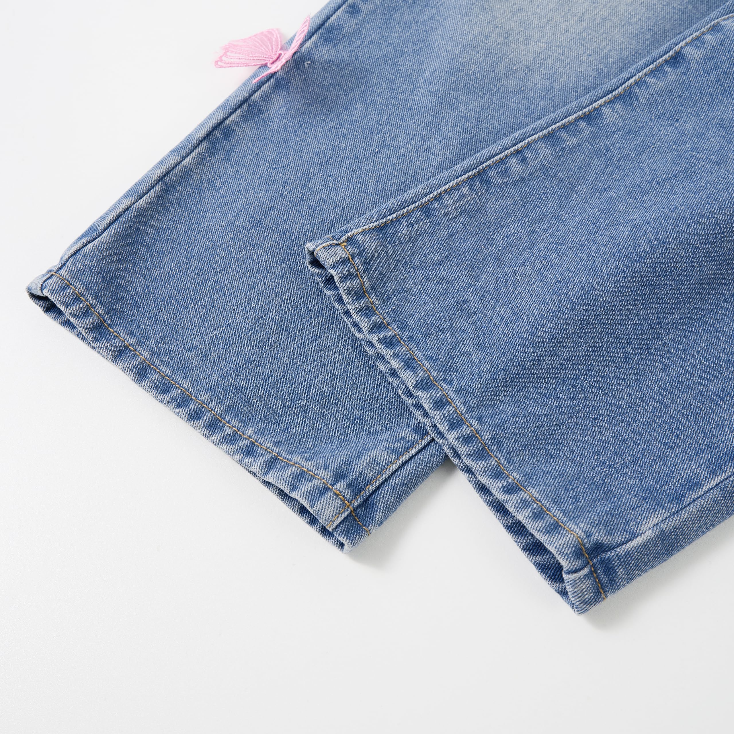 Stitched 3D Butterfly: Girls baggy Jeans with 3D pink butterfly decorations; 2 pockets on front offer functional flair. Elastic waistband expands for a perfect fit and easy to wear, NO pilling