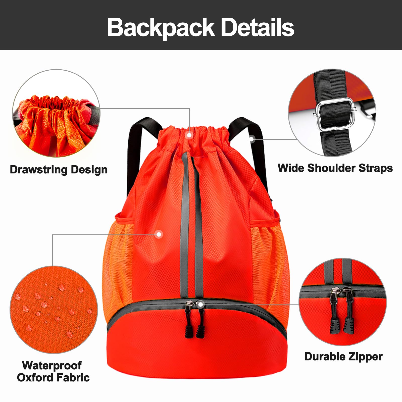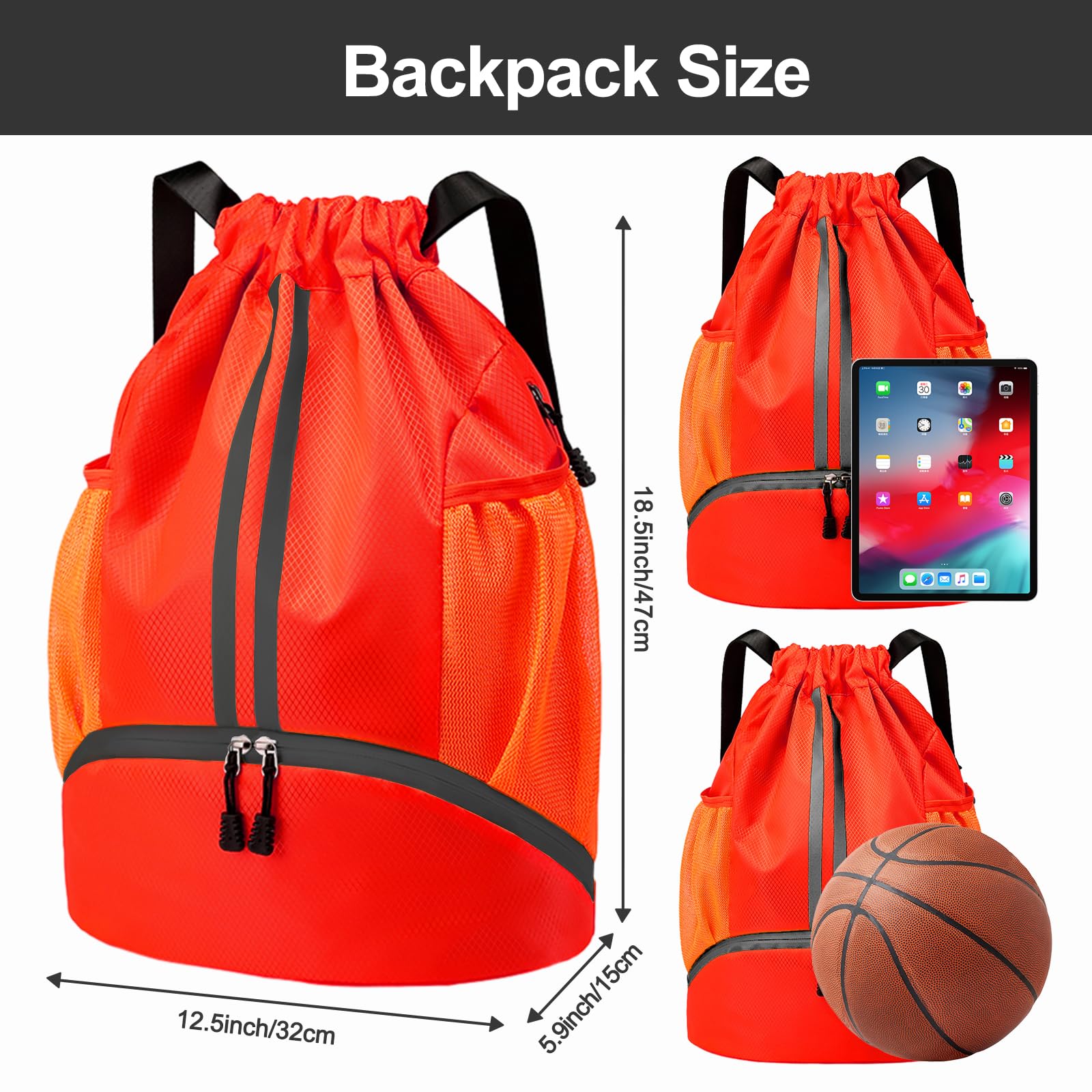 Large Capacity: The spacious space of this sports backpack ensures that you can carry training equipment, swim gear, beach items, all the essentials you need for workout. A basketball can be easily put in this bag without worrying about running out of space