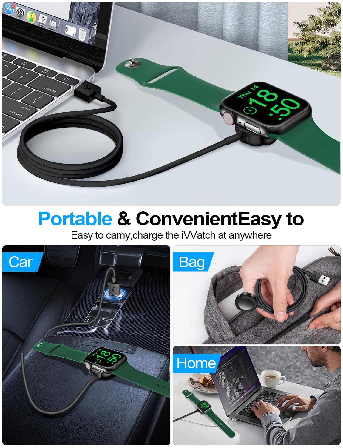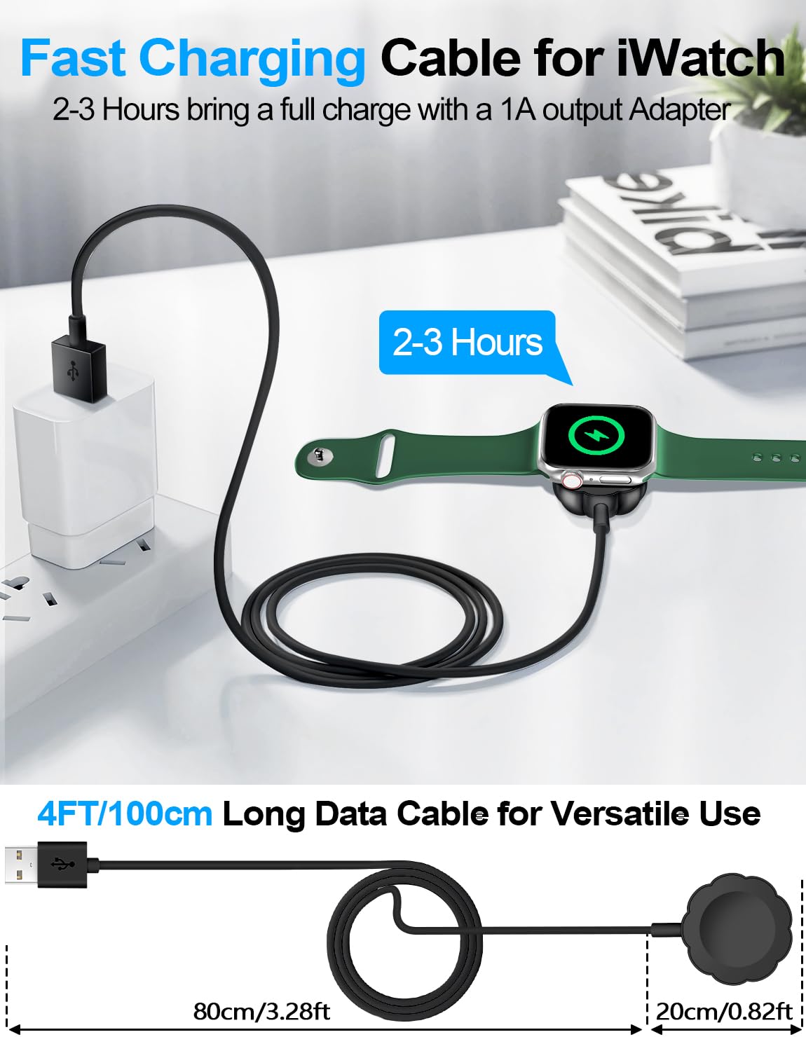 【Portable design】- This 3.3Ft charging cable for apple watch is convenient to carry around, especially for traveling,and is suitable as a backup charger for your watch