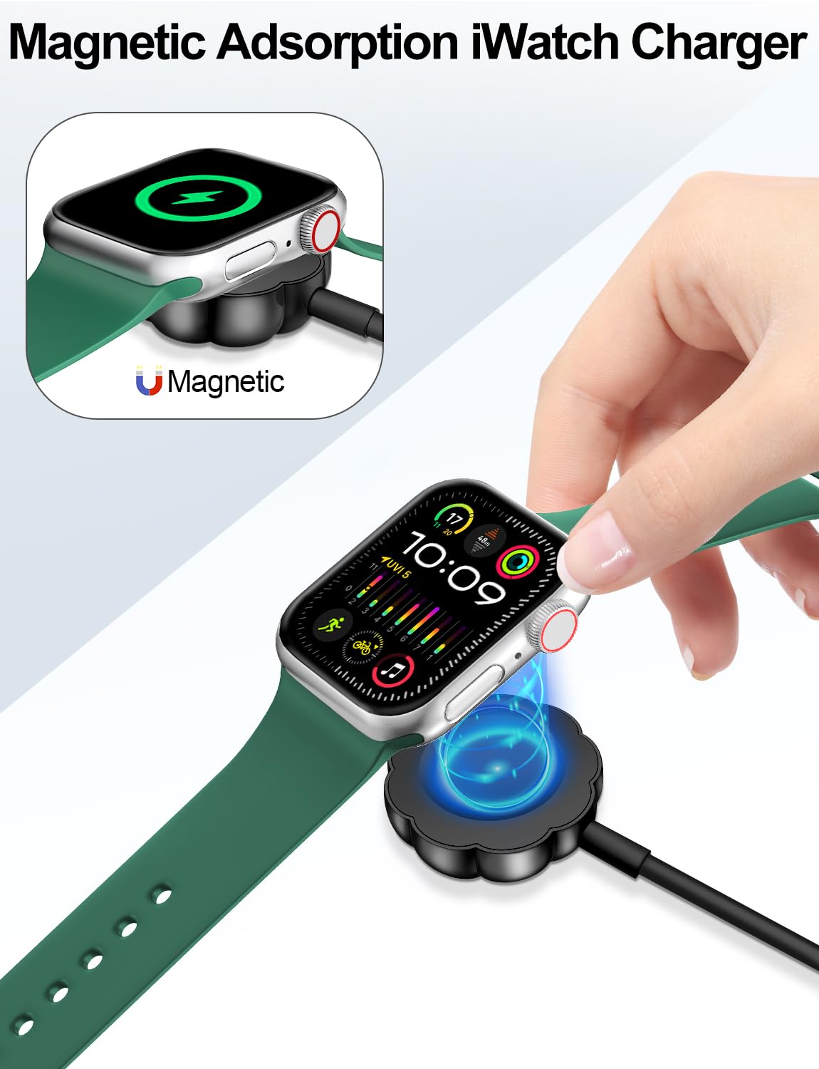 【Safe and Fast Wireless Watch Charging】- Our wireless charger provides a safer and faster charging mode,for a more convenient charging experience,Please take off the watch case and use a 5V/1A adapter or original adapter(ETL/UL Certified)