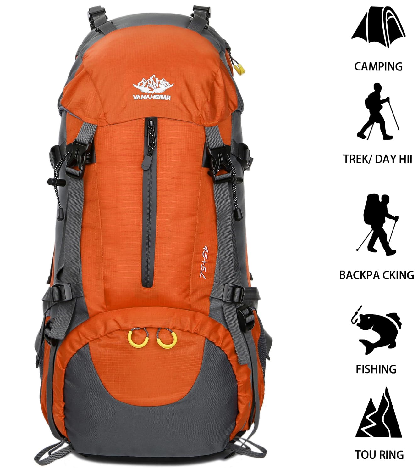 Multi-functional travel bag, 50L high-capacity include main compartment, two zipped front pocket, sleeping bag compartment, mesh side pockets, you can put your tents, blanket or cooking gear in this backpack, best for 2-4-day adventures