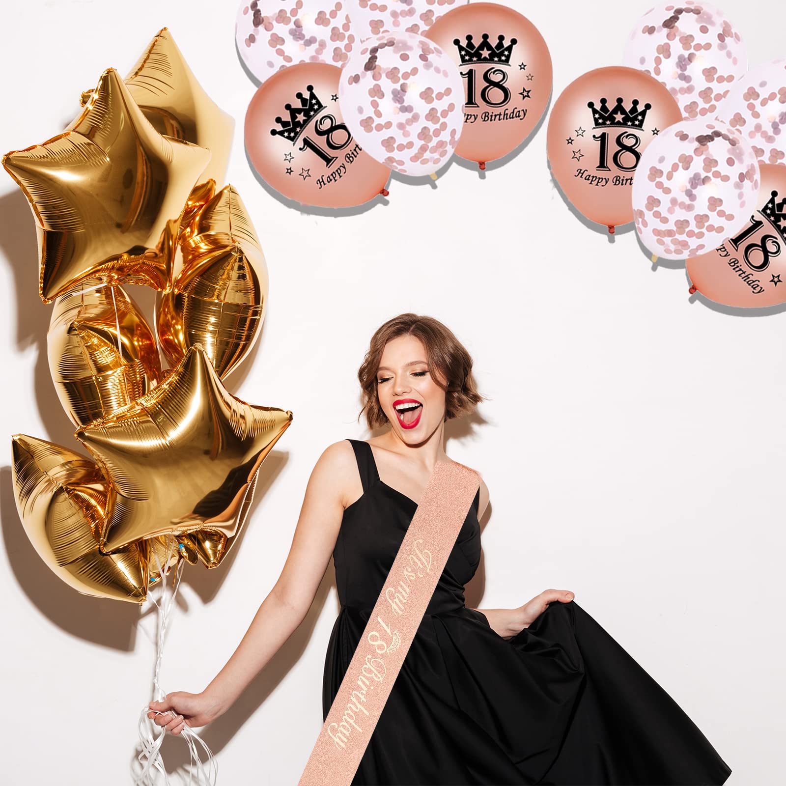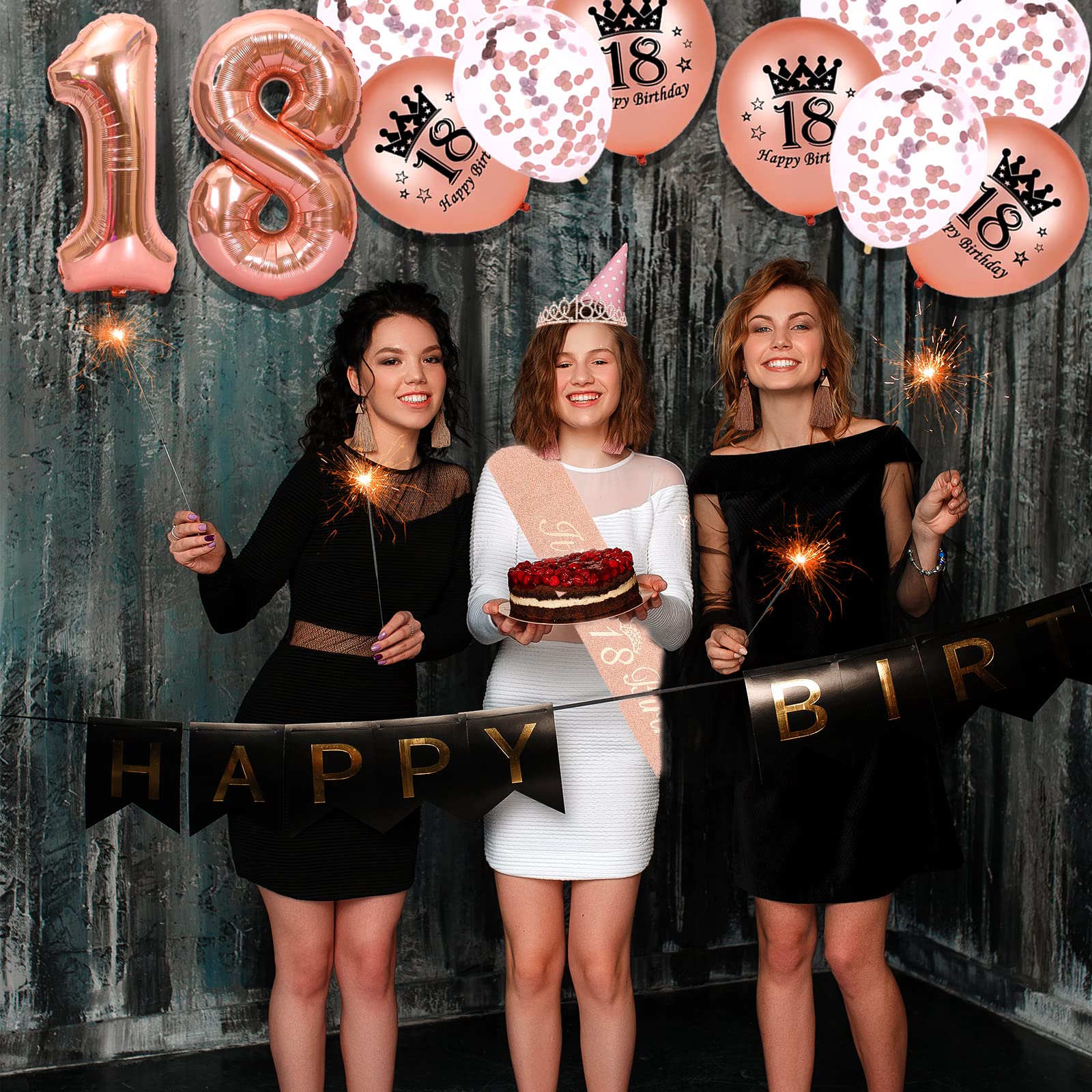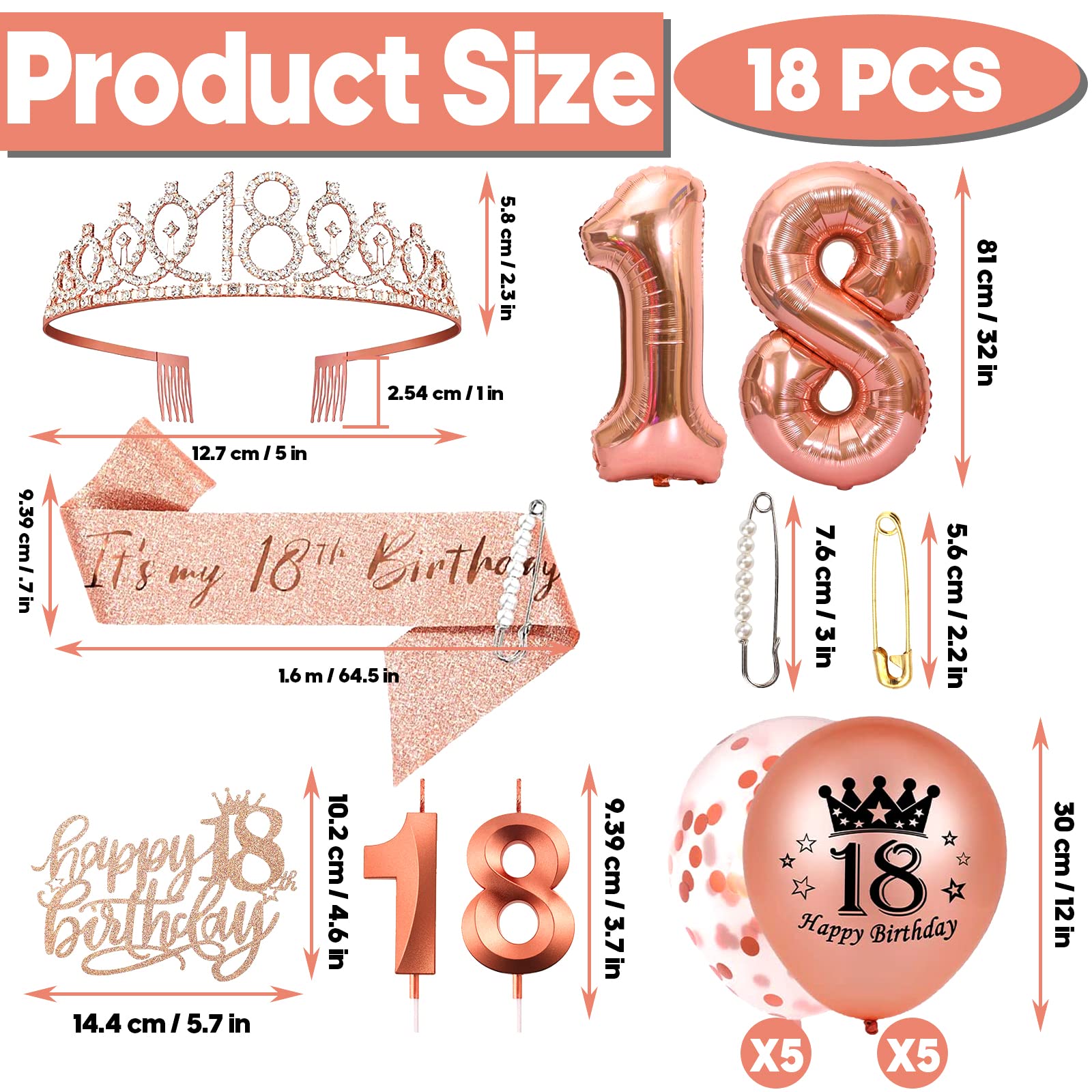 【18th Birthday Decorations】: Package coming with rose gold 18th birthday tiara 1pc, 18 birthday sash 1pc, 18th birthday balloons 12pcs, happy 18th birthday cake topper 1pc, 18th birthday candles, this Birthday Gifts for women remind her and everyone in the 18th birthday party how fabulous she is.