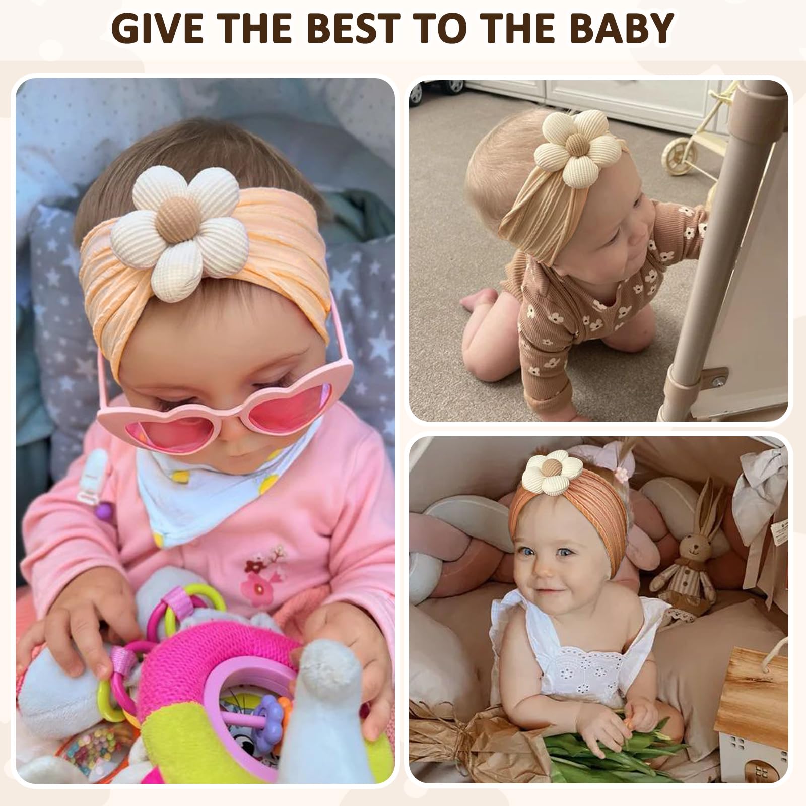 High-quality Materials: baby girl hairbands have a nice elasticity to grow from newborn infant to toddler and even big girls, Elastic and soft enough, the flower headbands for girls won't slip off and leave any red skin marks on your little girl's head